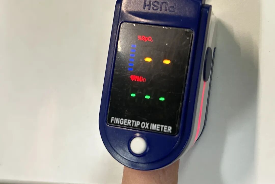 测量同一位同事未贴钻的食指时,显示氧饱和度为86%