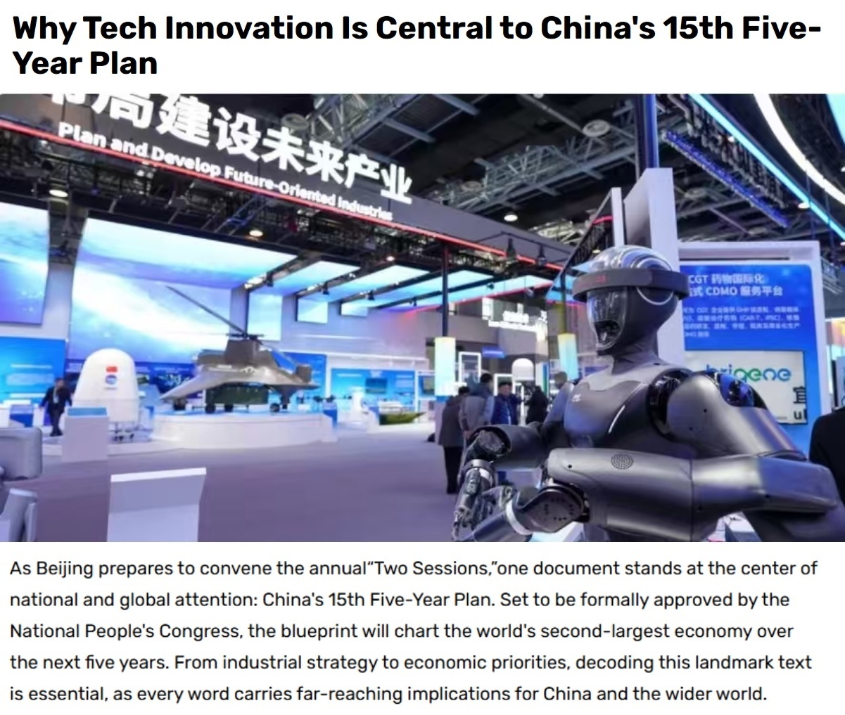 文章说,去年通过的“十五五”规划建议,勾勒出宏大的发展目标:更高质量的增长、更强大的金融体系,以及持续扩大的内需。其中,科技创新是中国战略的核心。这份建议中多次提及科技自立自强,这表明中国不仅将其视为目标,更视其为未来增长的核心引擎。