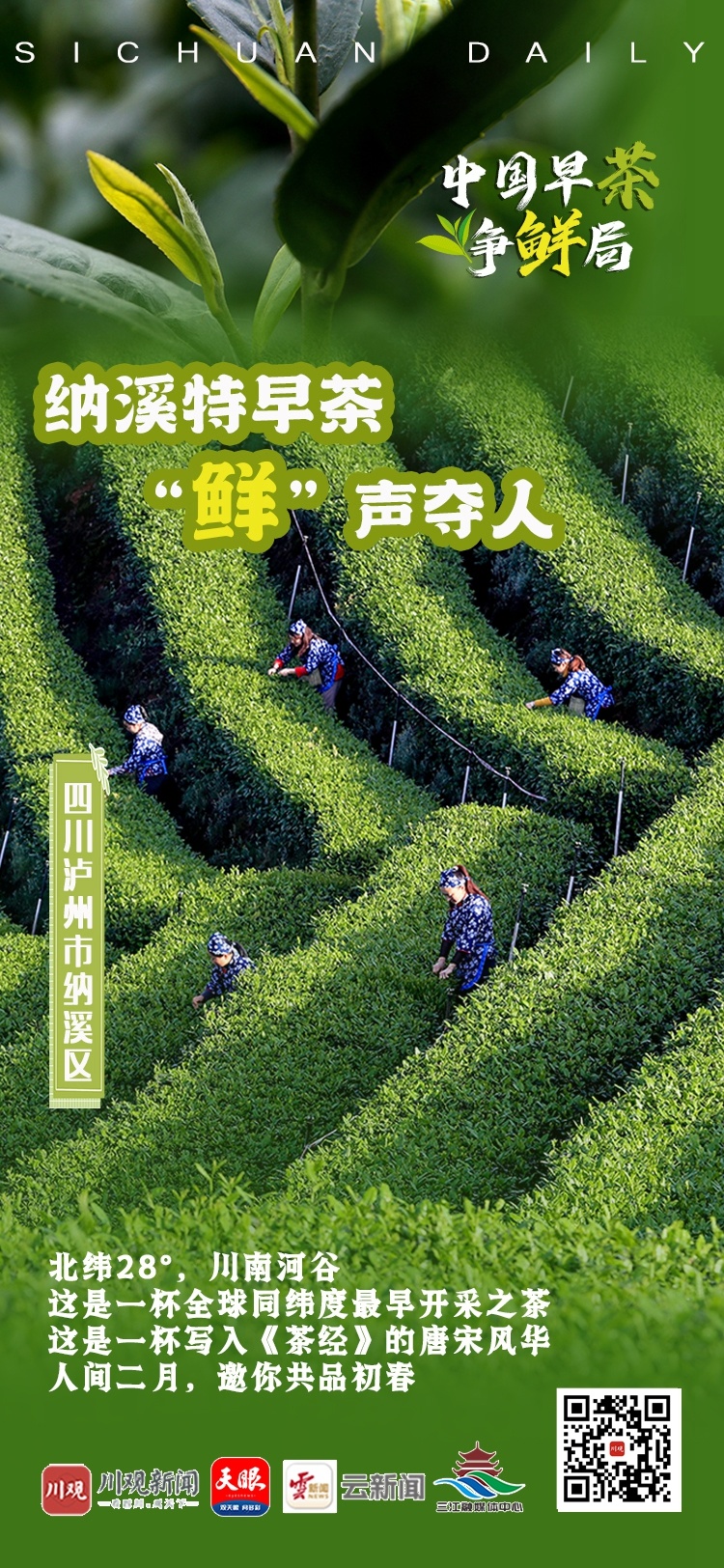 春寒料峭之际,在北纬28°大部分地区的茶树还在沉睡中时,泸州市纳溪区的茶叶已经冒出了嫩芽,成为全球同纬度茶树发芽最早的区域。