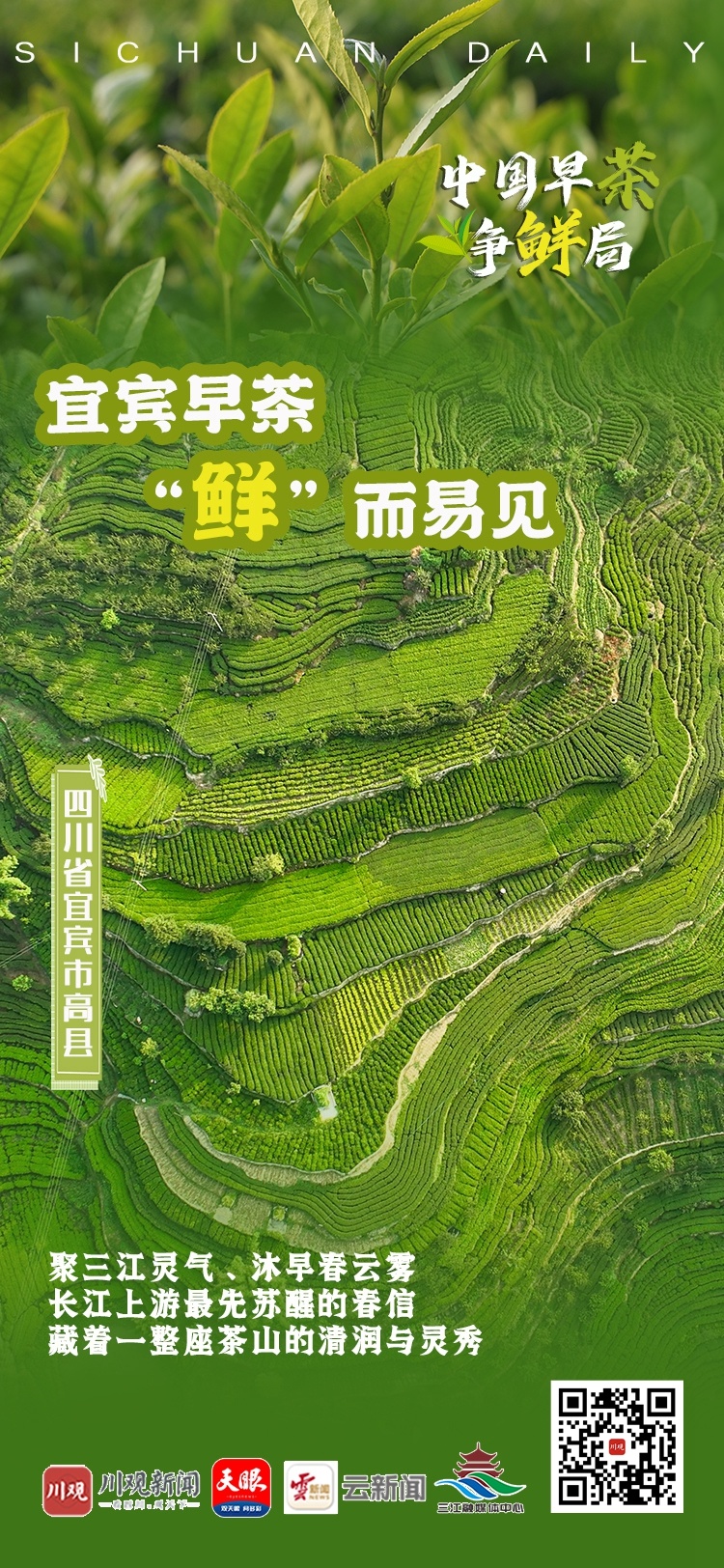 宜宾早茶采摘自越冬后首次萌发的嫩芽,茶树经过冬天的养分储备,将大量氮元素转化为茶氨酸,这口鲜爽深受青睐。宜宾早茶较全国主产茶区早15—30天开园,凭借“发芽早、鲜叶嫩、上市快、味道好”的核心优势被誉为“早优双绝”。