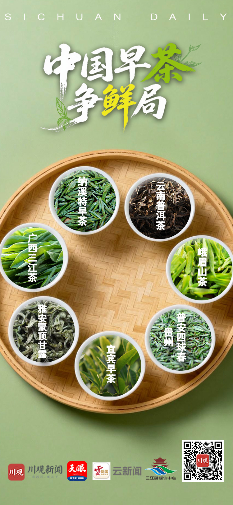 2月以来,春茶之前,从天府之国到多彩贵州,从八桂大地到彩云之南,四川、贵州、广西、云南的早茶陆续开采上市。四川日报联动贵州日报、云南日报及省内泸州、宜宾、乐山、雅安等地市,一起循着地球纬度的脉络,尝一口中国春天的第一杯茶吧!