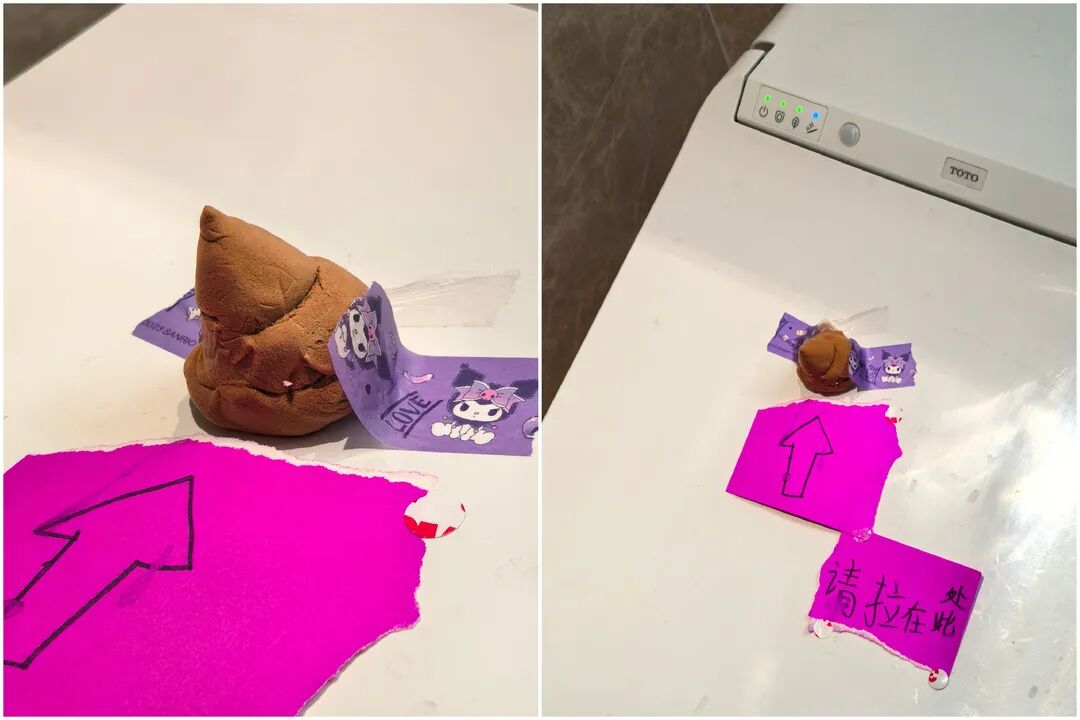 正月初七,杭州陈女士推开卫生间门,笑得直不起腰——马桶盖上摆着一坨黄色橡皮泥捏的“便便”,旁边贴纸写着:“请拉在此处”。这是八岁女儿悠悠的“作品”。