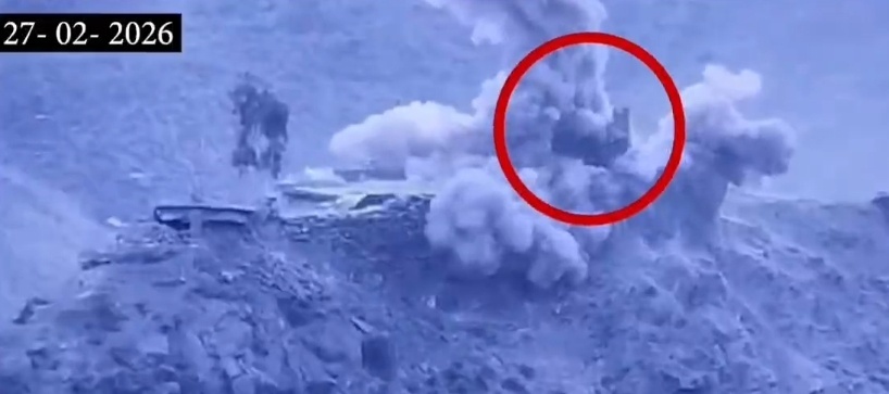 △巴基斯坦军方公布画面显示,巴基斯坦安全部队2月27日摧毁一处阿方哨所。