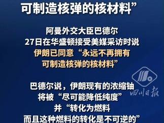 阿曼外交大臣巴德尔2月27日在美国华盛顿接受采访时称,伊朗已同意不拥有“可制造核弹的核材料”。