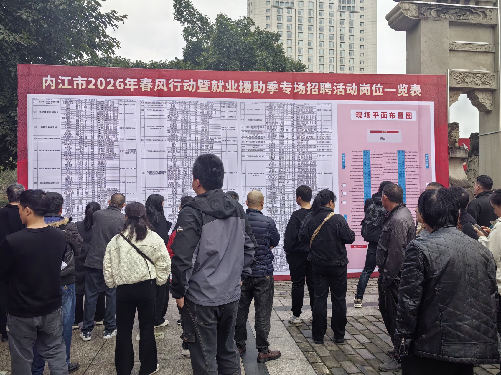 2月27日,内江市2026年春风行动暨就业援助季专场招聘活动在东兴区大千园广场举行。这是农历春节后,内江举行的首场大型招聘会。