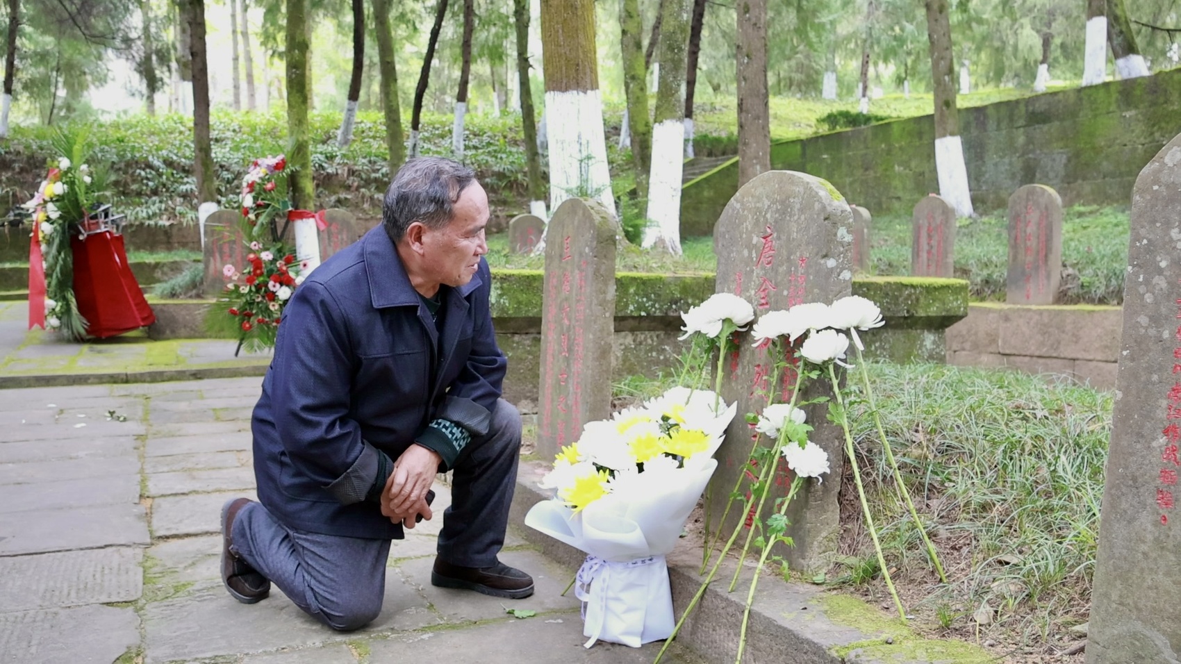 唐全弟烈士的侄孙唐德军一行敬献鲜花