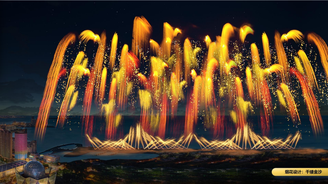 这次元宵烟花晚会不仅通过燃放品类多样组合让画面有了非常丰富的创新,我们在焰火摆放方式上也进行了独特的设计,通过设计立体景深,让燃放画面在提升色彩搭配的同时,还增强了空间层次与视觉动感。