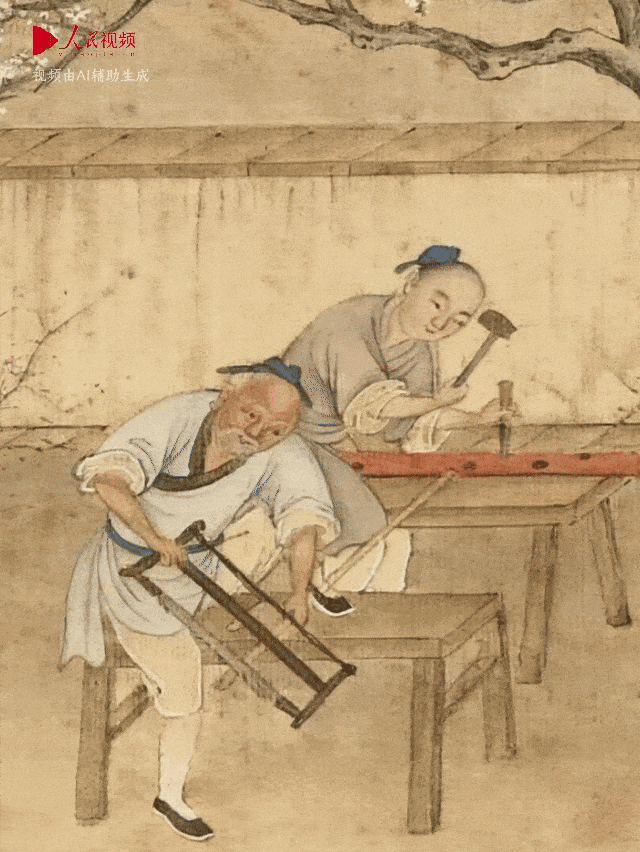 老爷爷卯足了劲拉锯
