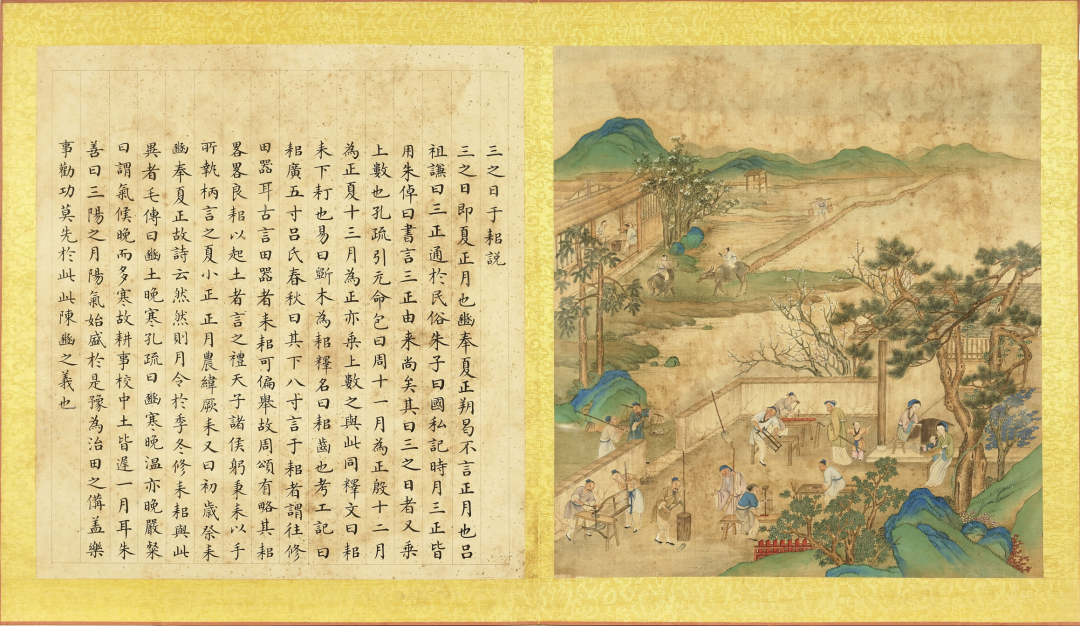 《清张师诚跋豳风十二月图说册》之“三日于耜”(传)(清) 佚名