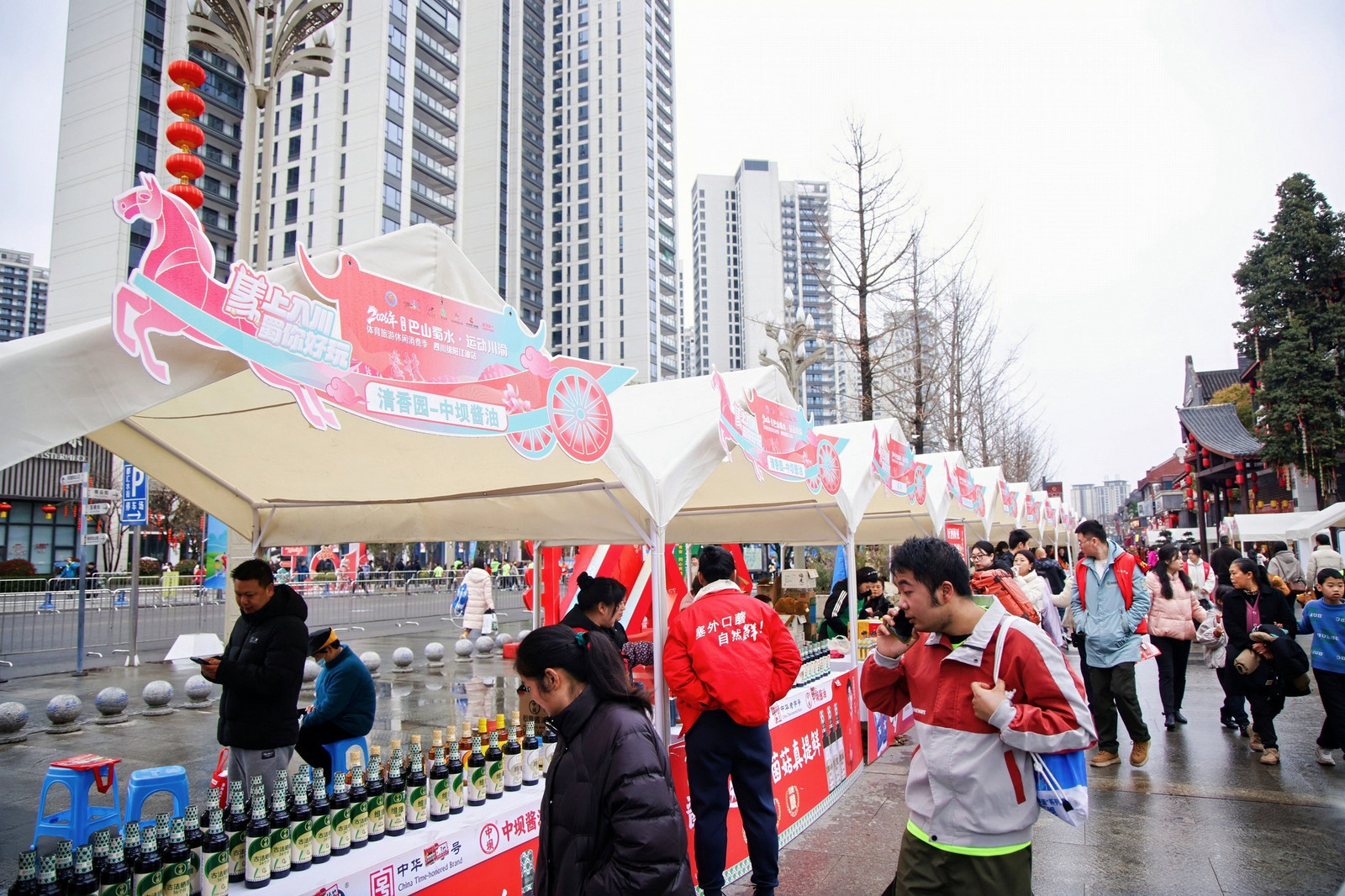 记者在现场看到,近80家优质展商已汇聚于此,不仅带来了琳琅满目的商品,更有活动主办方精心打造的诗意文化、非遗体验、智慧运动、乐享滋味四大主题体验区,让不少前来江油市民以及前来参加马拉松的跑者争相参与。