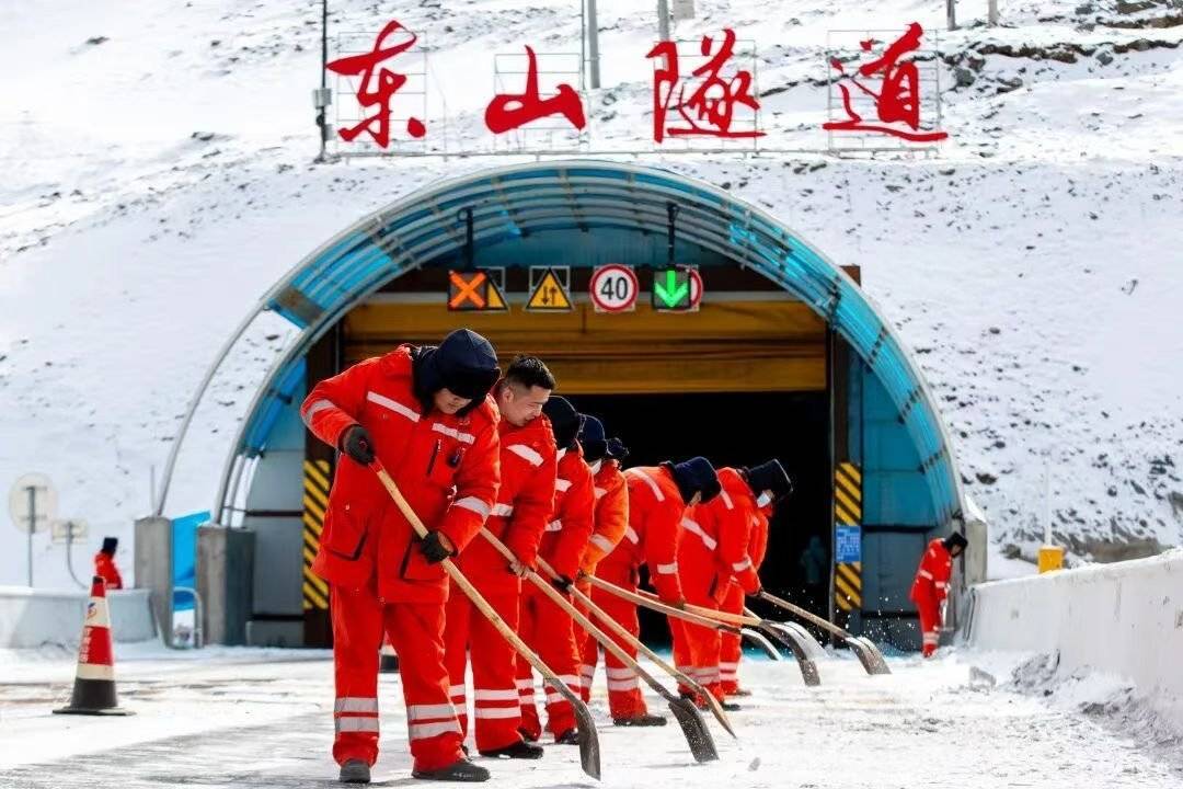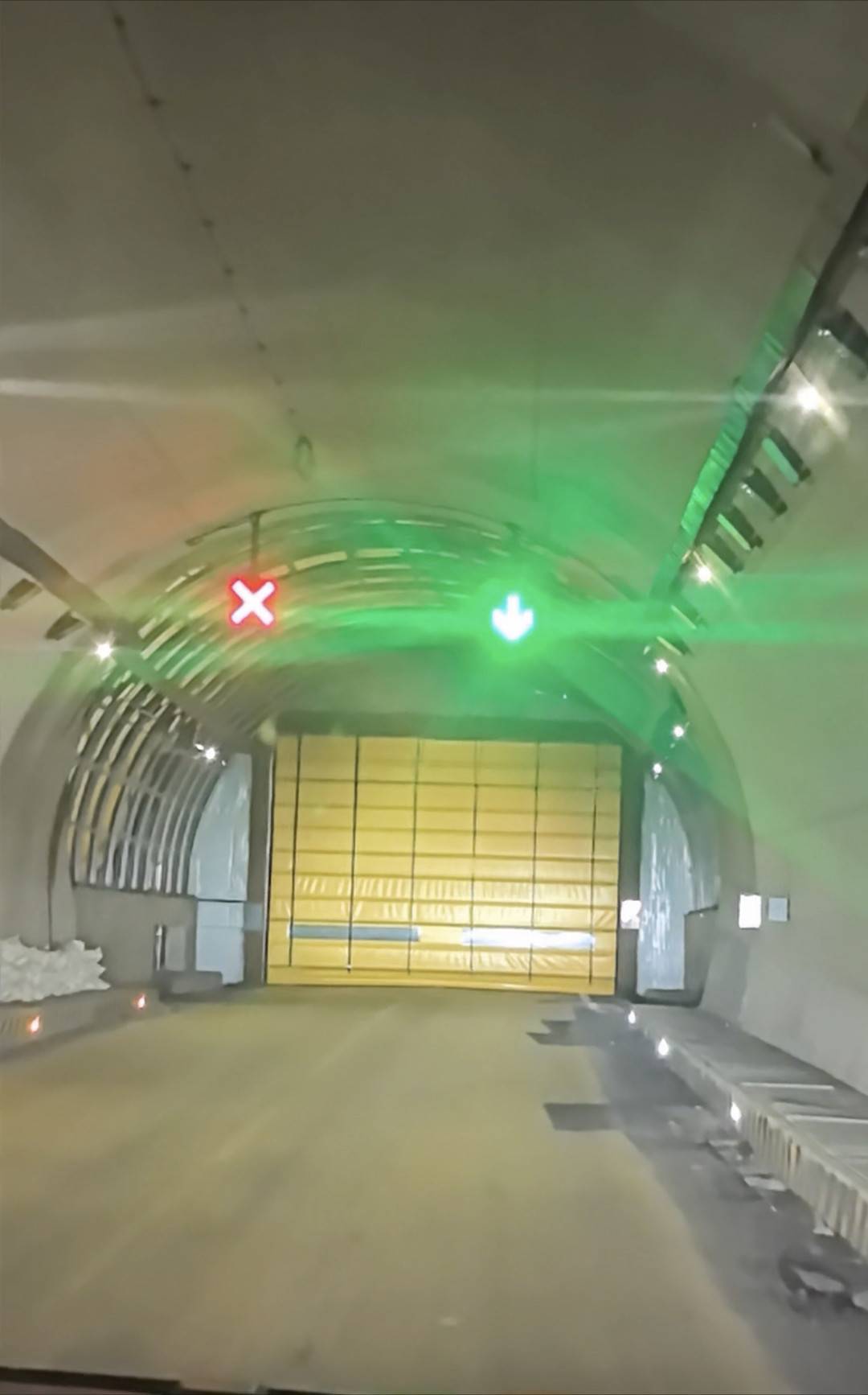 2021年9月隧道通车初期,遇到一大通行难题——洞口及内部结构在极端低温下极易发生冰冻风险。为了破解这一难题,养护团队研发并投用了会“看车”的智能防寒门,以防止风雪灌入造成路面结冰,影响行车安全。“它就像进地库的感应门一样,没有车辆通行的时候是关闭状态,有车辆经过就会自动打开。”陈先生说。