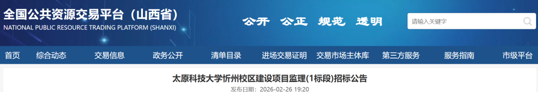 《太原科技大学忻州校区建设项目监理(1标段)招标公告》显示,本招标项目已由忻州市行政审批服务管理局批准,项目资金来源为争取上级资金,不足部分由市财政解决,招标人为忻州市城乡建设开发有限公司。本项目已具备招标条件,现进行公开招标。