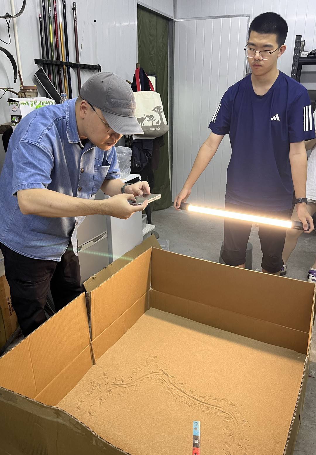 当然,实验过程并非一帆风顺。实验用什么样的沙子、铺多厚的底、实验区弄多大,这些都要反复调试。更重要的是,蜥蜴的脾气秉性完全不可琢磨。邢立达解释道,“它不像猫狗可以哄劝,人很难和蜥蜴共情,也很难让它感到舒服。所以得看它的状态,比如它懒得动的时候,只能等。不能在它吃太饱的时候实验,它会犯困;也不能饿着它,它会很焦虑。只能等它状态合适的时候实验。”