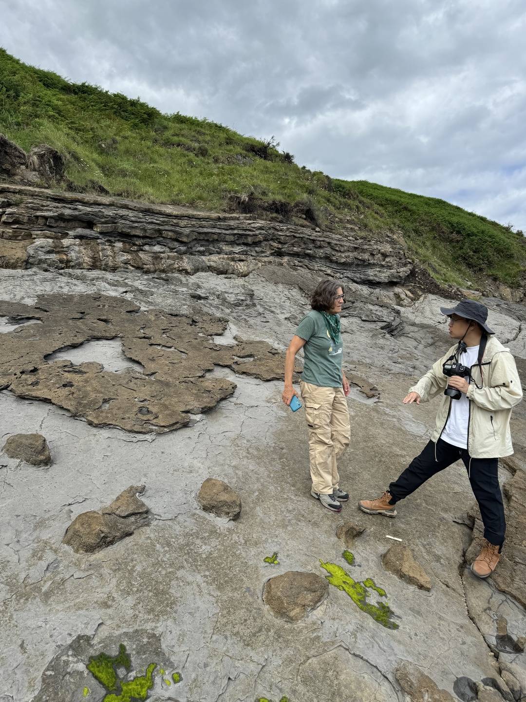 邢立达表示,能在这里发现蜥蜴行迹化石颇为不易,“蜥蜴的行迹又小又轻。很多化石如果没在夏季被及时采集和保护,冬天的海浪、风暴可能就把这些化石破坏掉了。”而且有的石头太重,五六个人都搬不动,还要经过崎岖的乡间土路,“有时我们就请当地驻军帮忙,用直升机吊运。”