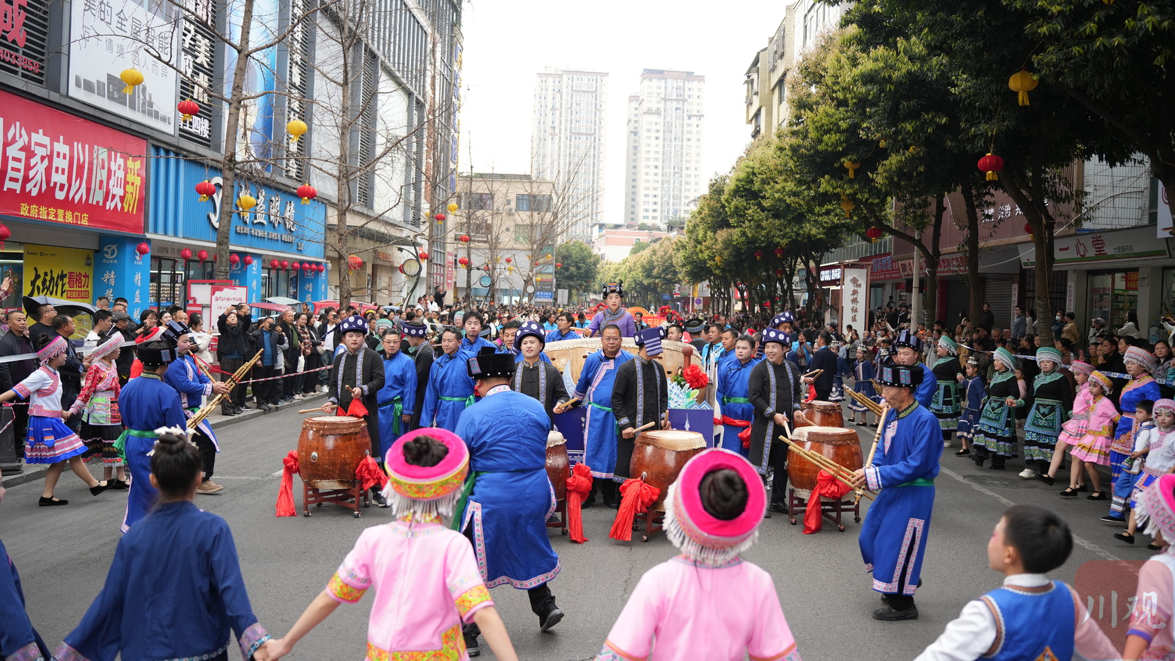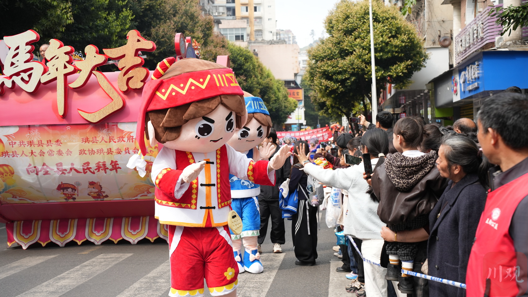 当天,非遗队、篮球宝贝队、汉服队等与珙县13个乡镇组成的巡游队伍走上街头向全县人民拜年。龙灯、狮灯、芦笙、牛皮鼓、腰鼓、竿竿舞等能反映本巡游队伍文化元素轮番上演。