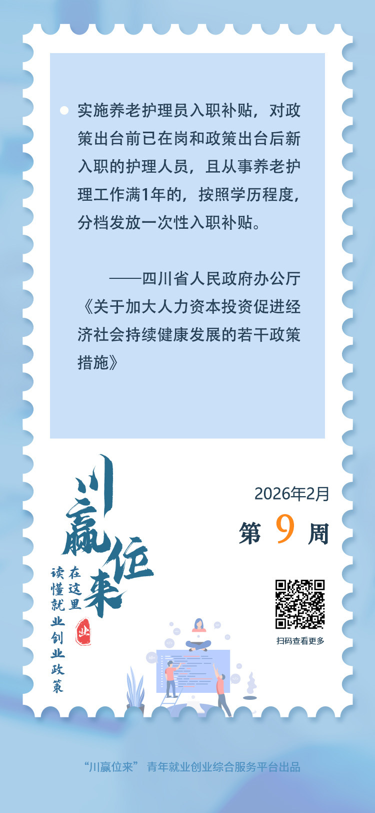 从今年1月1日起,四川实施养老护理员入职补贴,同时支持养老护理员提高职业技能等级,凡是新取得中级工及以上职业技能等级且在岗的养老护理员,均发放一次性职业技能等级补贴。省政府办公厅近日印发《关于加大人力资本投资促进经济社会持续健康发展的若干政策措施》,其中促进养老服务发展方面,作出上述政策规定。