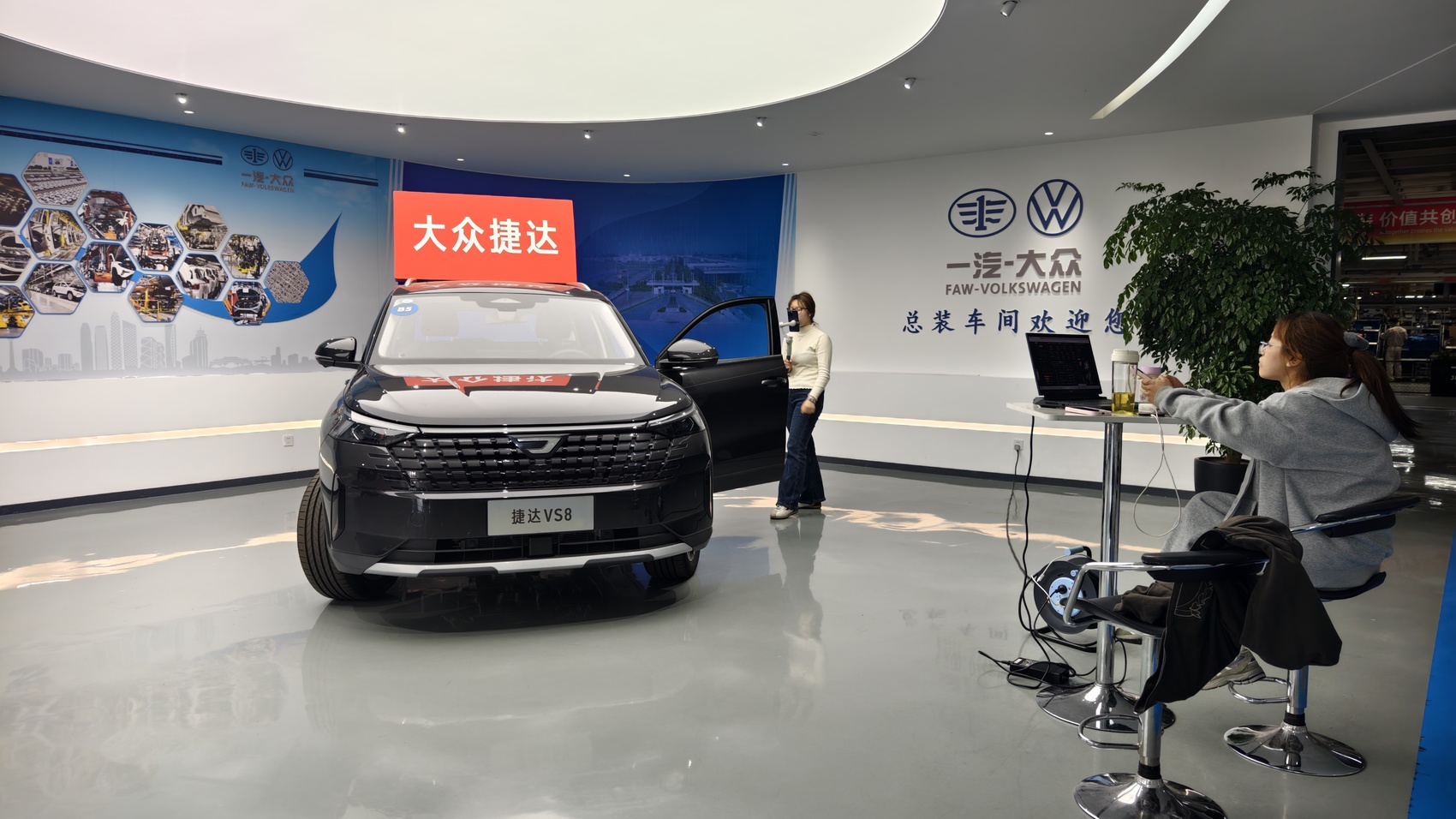 “这辆捷达在成都生产,我们就在工厂的车间直播,车型都是年轻化设计。”2月27日,由厂房改建的直播间里,3位主播和直播助理正热情介绍3台新车。灯光、相机、提词器、屏幕……全套网络直播设备一应俱全。