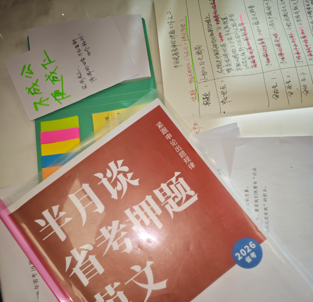 最后阶段没有方向的可以背一背《半月谈省考押题范文16篇》,积累3—5个通用的开头和结尾模板,重点关注基层治理、乡村振兴、生态文明、文化传承等高频热点,准备好典型案例。