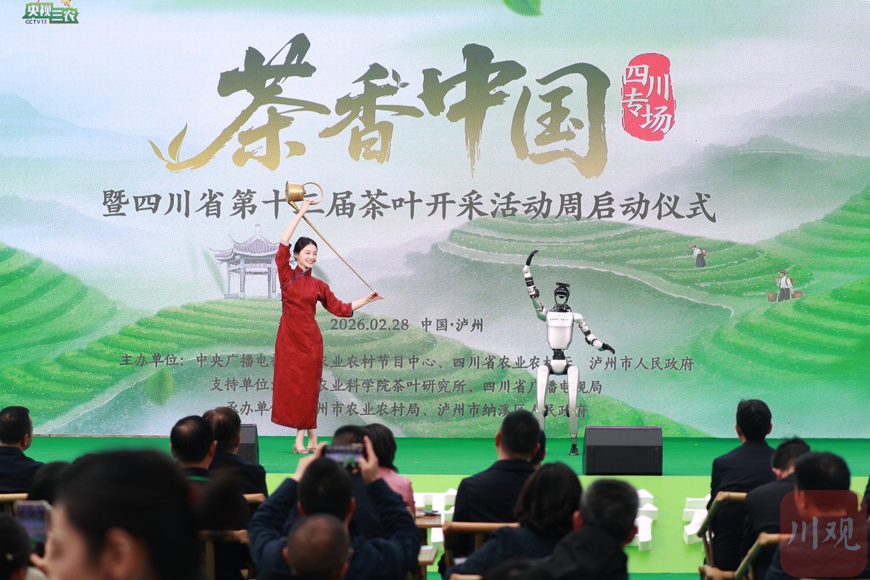 启动仪式现场,舞蹈《那溪那山》让茶园春色跃然舞台;时空穿越剧《寻味纳溪・二月茶》感受茶文化在时光流转中的生生不息;茶艺师与智能机器人同台秀茶艺,让传统文化与现代科技碰撞出了奇妙火花。