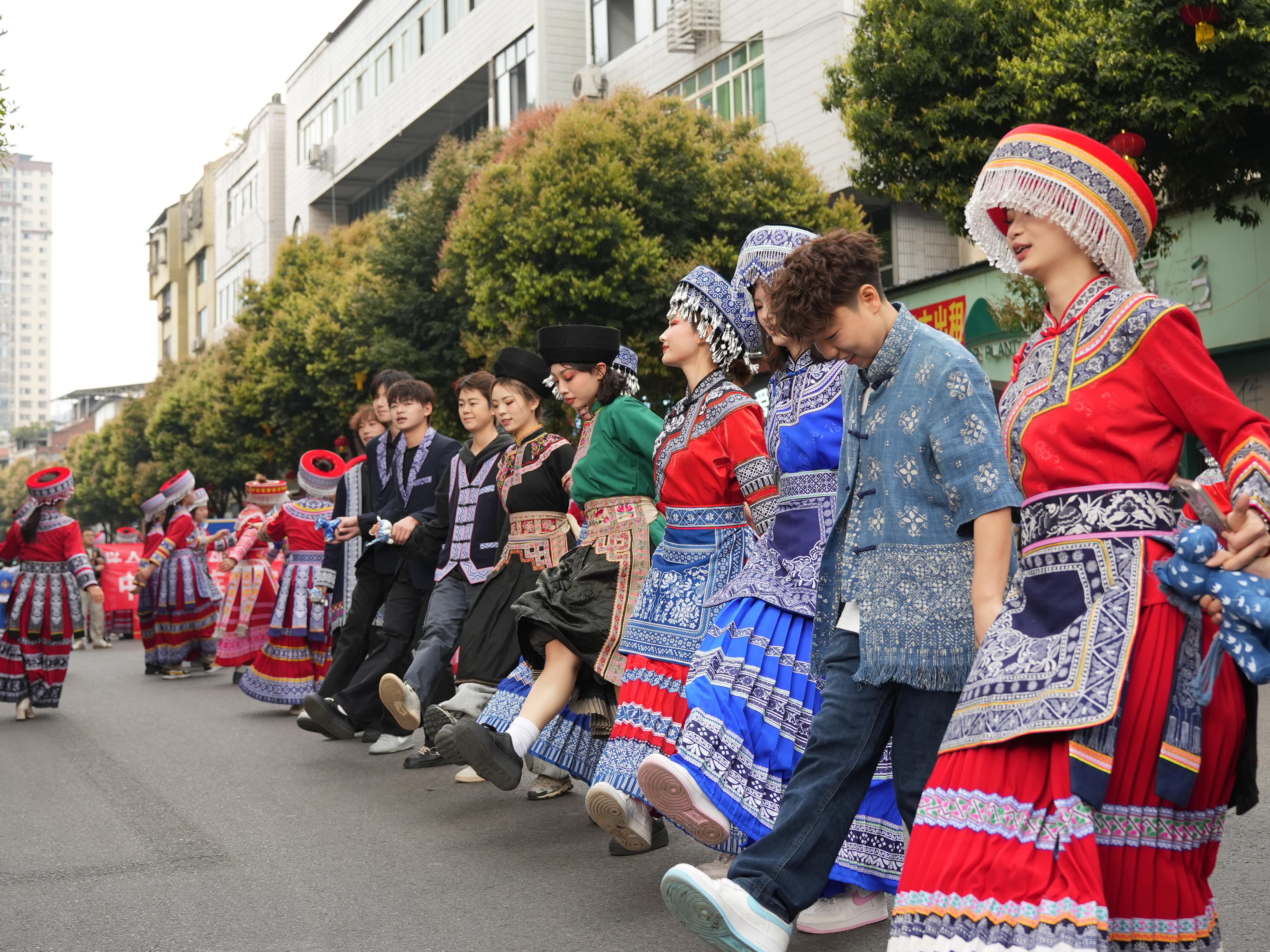 女子群舞《火辣辣的日子》以灵动舞姿展现了村民们富足安乐的生活状态;小品《归巢》通过返乡创业的温情故事,勾勒出珙县农村产业兴旺、人才回流的生动场景;作为 “苗族蜡染之乡”,珙县苗族同胞带来的古歌《亚罗卡得罗》,40 名演唱者用悠扬曲调传承着千年民族记忆,尽显非遗文化的独特魅力;话剧小品《石榴树下》以生活化的剧情,讲述了各民族群众互帮互助、共促发展的暖心故事;音乐情景舞蹈《光阴》以艺术化手法再现了珙县产业转型升级的奋斗历程,从传统产业到新兴产业的迭代变迁跃然舞台;音乐情景剧《珙桐花开》作为点睛之作,60 名演员化身 “植物活化石” 珙桐花,花瓣舒展间宛如万千白鸽展翅,既呼应了珙县 “珙桐之乡” 的美誉。
