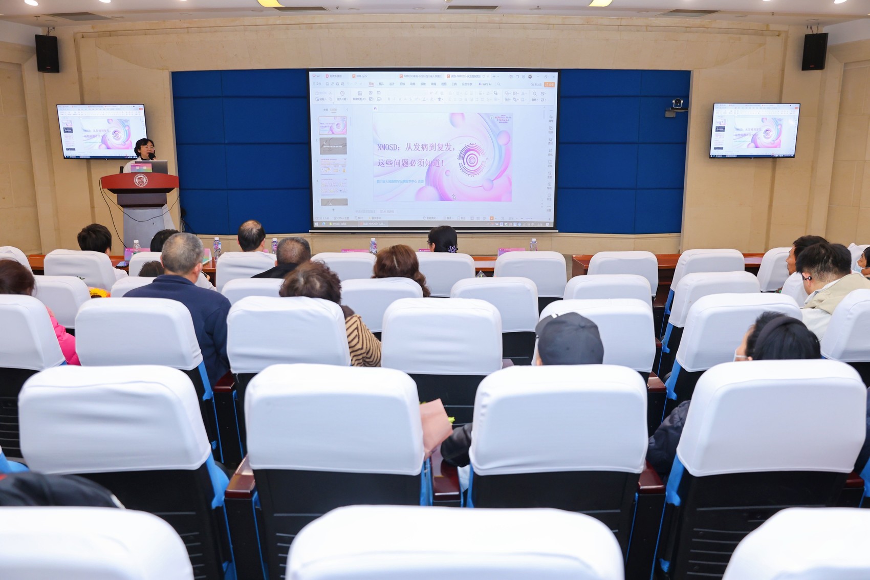 活动现场,罕见病医学中心、胸外科、神经内科等多位专家轮番开讲,端上科普“大餐”。从前沿医学知识到日常护理技巧,专家们讲得通俗易懂,患者和家属听得认真。医务社工团队也亮相介绍服务内容。