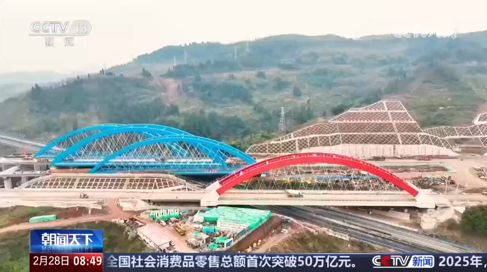 眼下,四川省重点推进的渝昆、西渝等6条在建高铁已全面复工。按计划,今年渝昆高铁川渝段将争取具备通车条件;成渝中线高铁将全面进入联调联试阶段;成达万高铁则将进入全线铺轨与初步验收阶段。四川正加速“织”密高铁网络,为区域高质量发展注入强劲动力。
