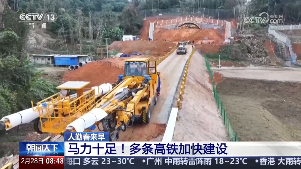 央视网2月28日消息:新春开局,各地高铁建设争分夺秒、加速推进。一条条交通大动脉加速延伸,让区域交通网更密,群众出行更便捷。