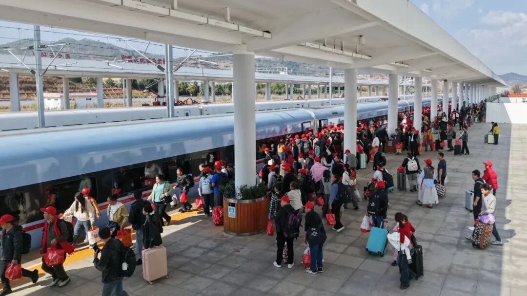 2月24日起,中国铁路昆明局集团有限公司在管内曲靖站、广南县站、普者黑站、富宁站等站陆续开行务工列车,为千余名务工人员安全有序返岗提供了运输保障。