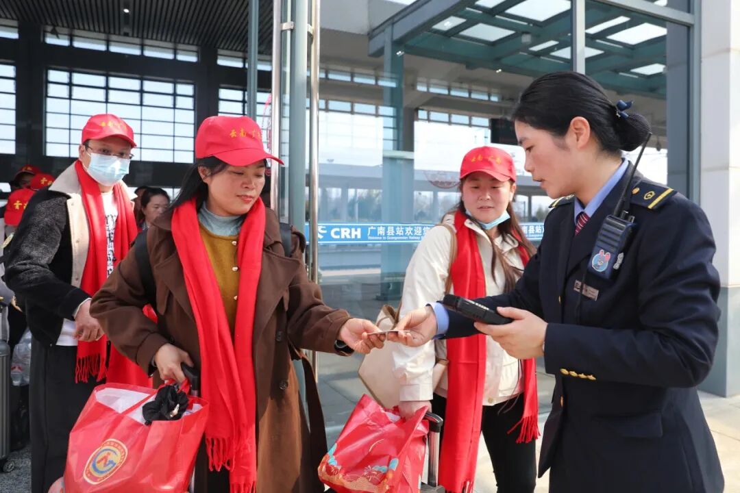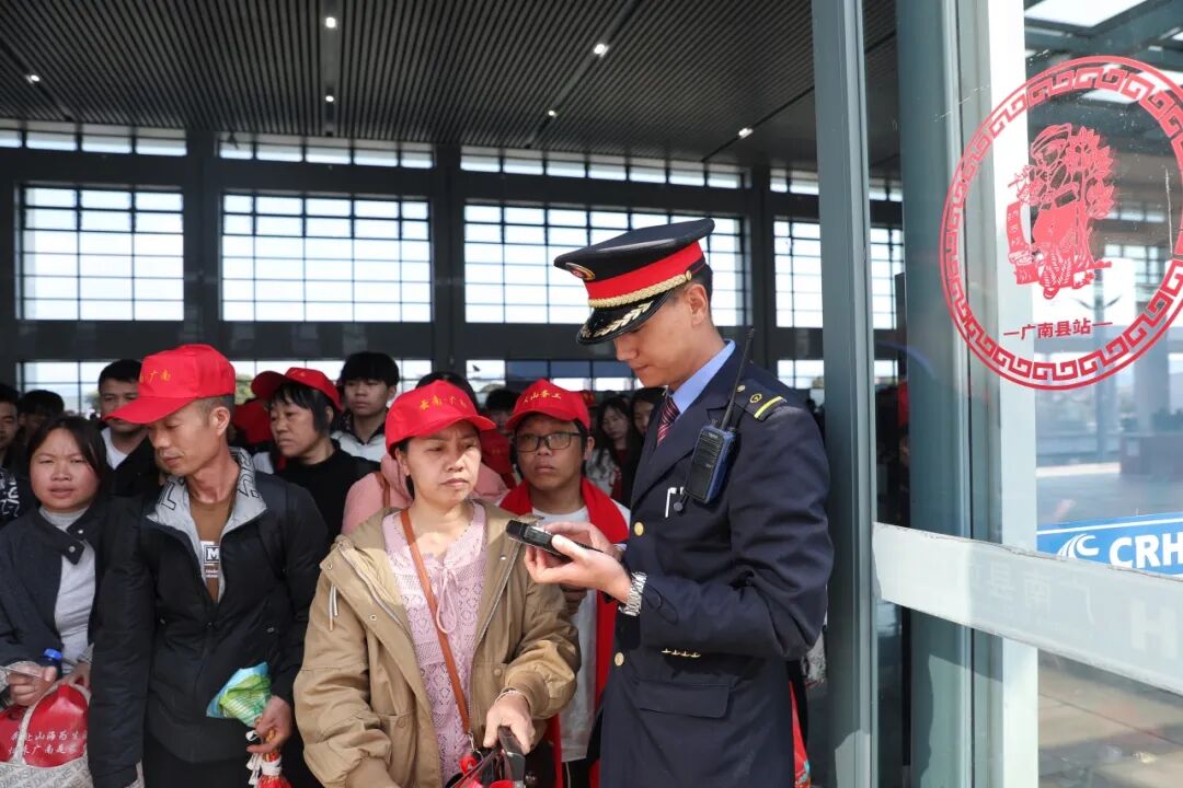 文山州作为务工人口输出地,每年有超过69万人员到省外务工。为确保务工团体的顺利出行,广南县站专门设立了专用候车区和绿色通道,并安排专人提供车厢引导等服务,保证务工人员出行顺畅。