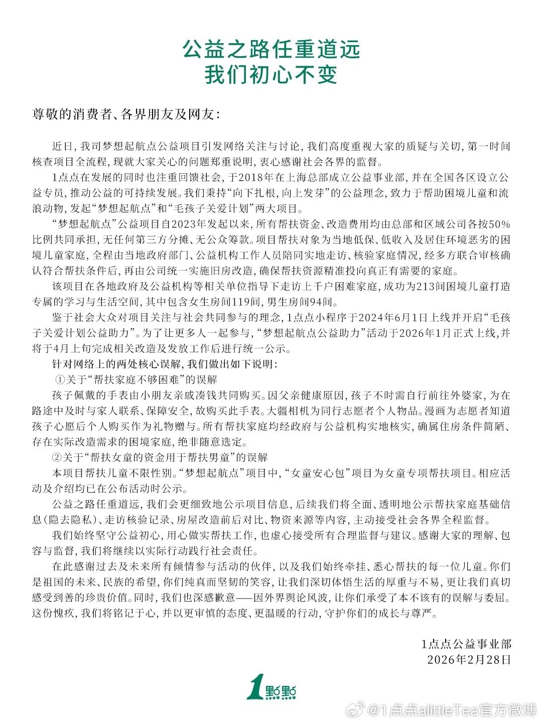 2月28日,一点点官方发文通报“帮扶家庭不够困难”一事,其称针对网络上的误解,做出如下说明: