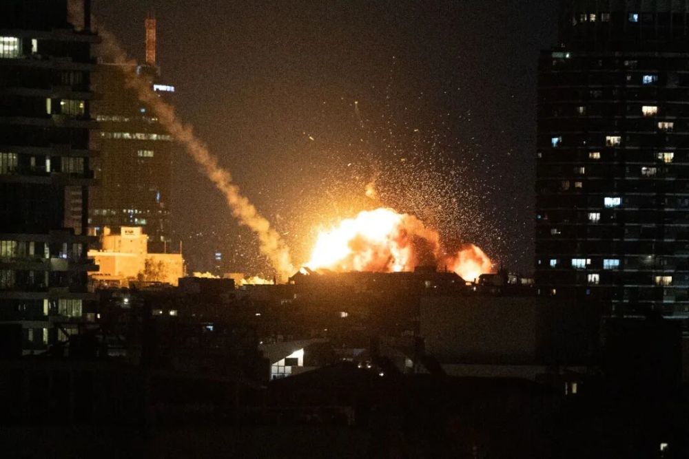 以色列特拉维夫市区2月28日晚传出巨大爆炸声,新华社记者看到有建筑物冒出火光。