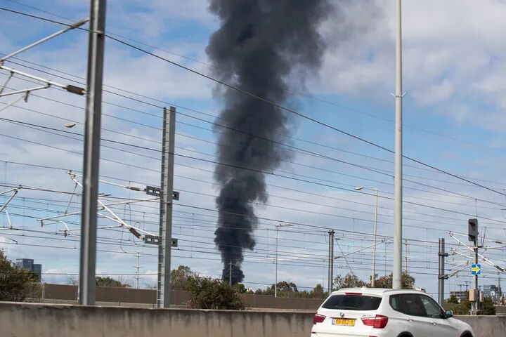 这是2月28日在以色列特拉维夫拍摄的浓烟。 新华社记者陈君清摄