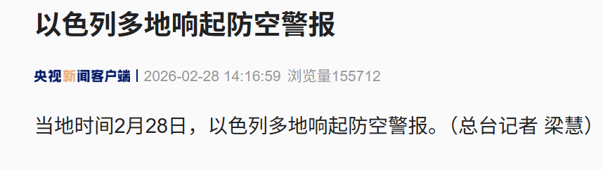 当地时间2月28日,以色列多地响起防空警报。