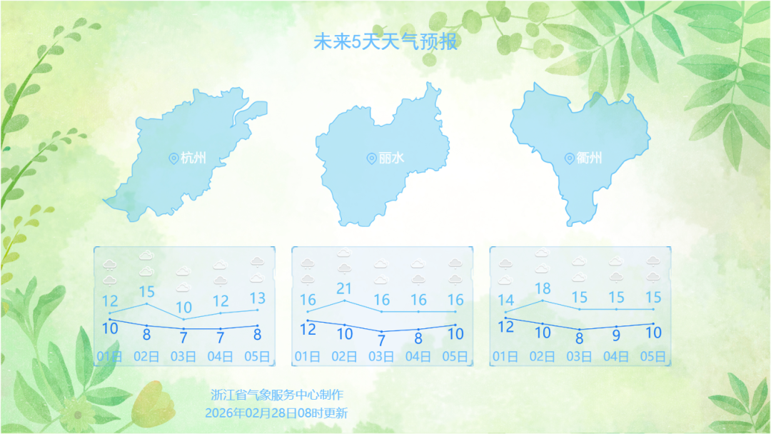 今天白天:浙中南地区阴部分有小雨,其它地区阴局部有小雨。