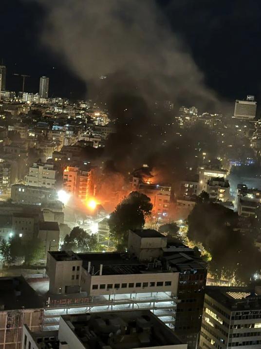 △伊方披露图片显示以军总参谋部总部大楼遭袭并燃起大火