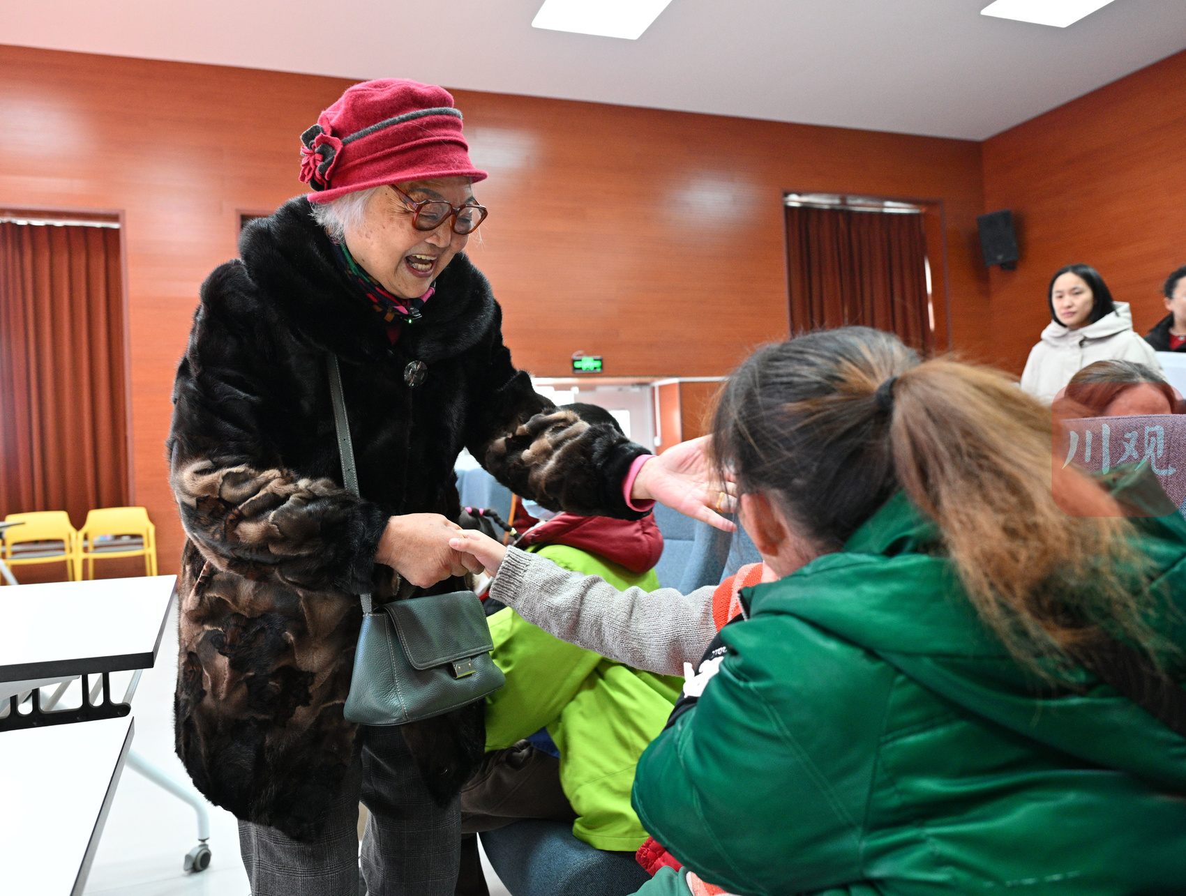 袁桂珍婆婆来到德阳市特殊教育学校看望孩子们。