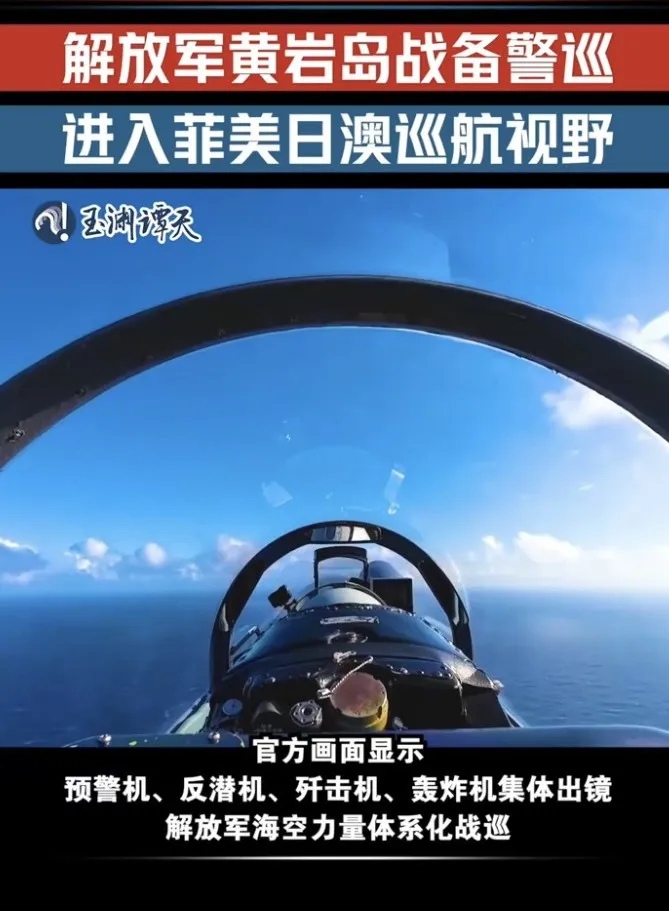 在官方发布的视频中展示的飞行员对话表明,我海空兵力进入了菲美日澳所谓“联合巡航”区域。