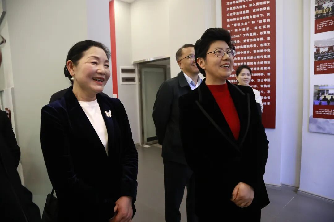 沿着习近平总书记的足迹,陈志君来到昭觉县三岔河镇三河村。在“依凯洛法官工作室”,她详细了解“法官+德古”特色调解模式,强调要推动传统治理智慧与现代司法理念深度融合。走进吉好也求家中,陈志君实地感受脱贫攻坚带来的历史性巨变,聆听群众感恩奋进的真切心声。她深情感慨,凉山法院要牢记嘱托,以高质量司法服务保障乡村振兴,让法治阳光照亮彝乡振兴之路。分别时,陈志君用彝语“孜莫格尼”向大家致以美好祝福。