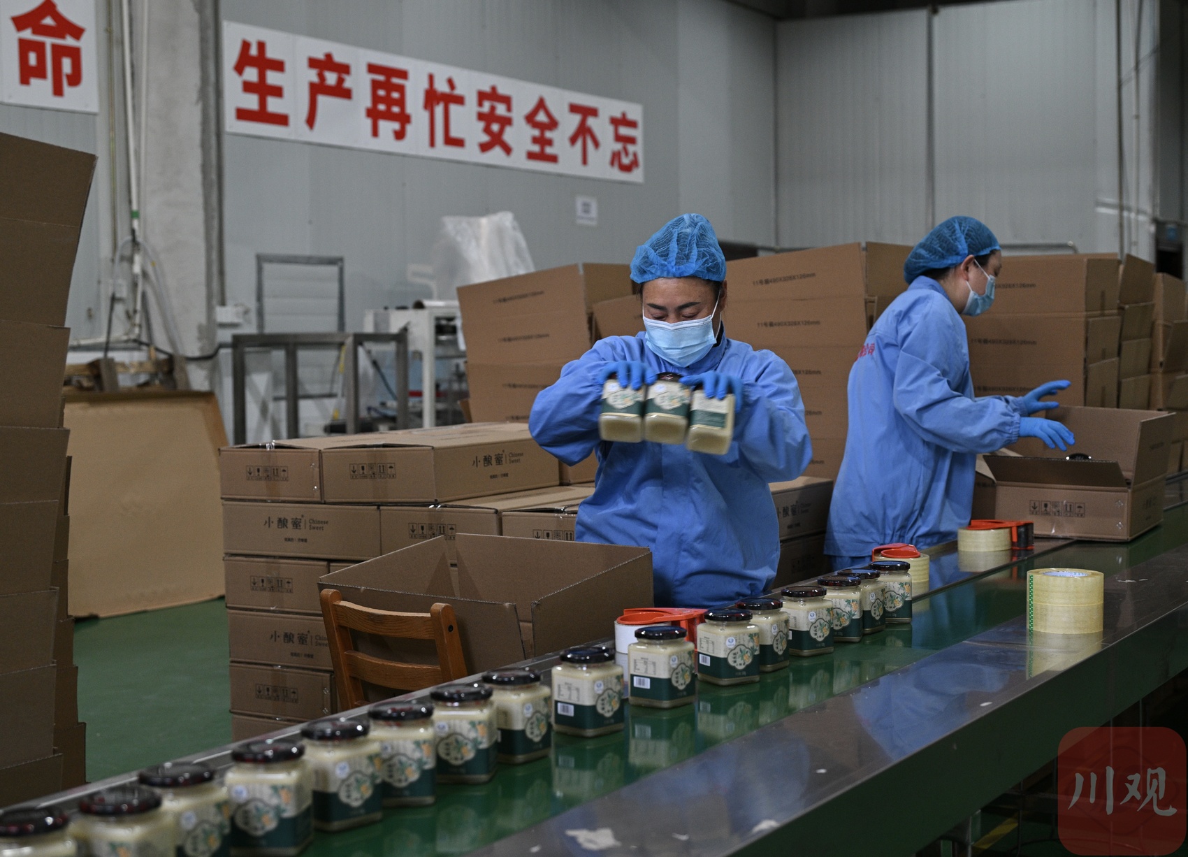 3月2日下午,四川小酿蜜品牌管理有限公司生产车间内一派繁忙景象。一条条自动化灌装生产线正有序运转,一瓶瓶源自大凉山的优质蜂蜜经过精心灌装、封口、贴标,将被运往全国各地消费者的餐桌。