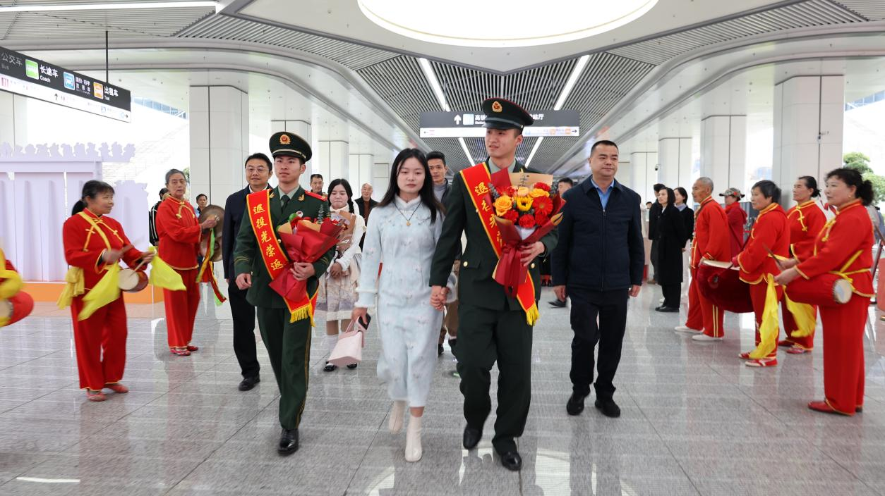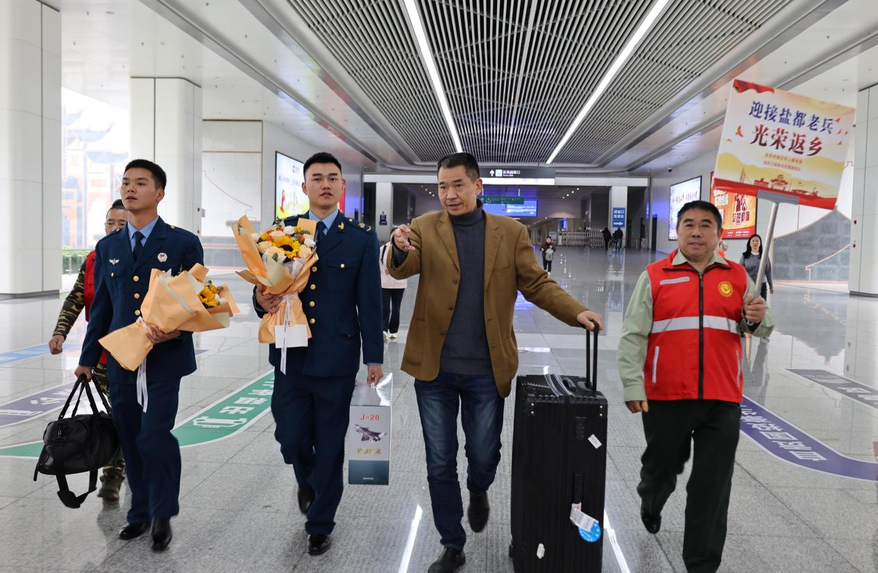 3月1日,自贡在高铁站设立了退役士兵光荣返乡服务点,迎接首批2026年春季退役士兵。与往年相比,今年的欢迎仪式在保留传统接站服务的基础上,新增了红色画展、现场思政课教学等环节。