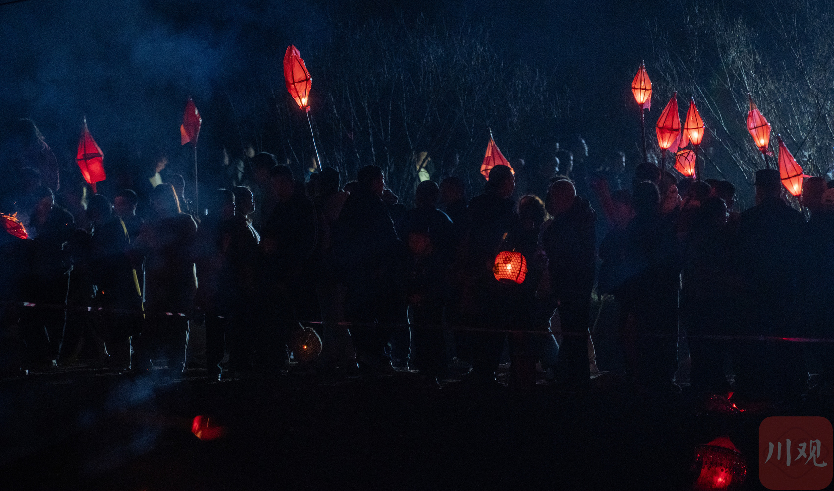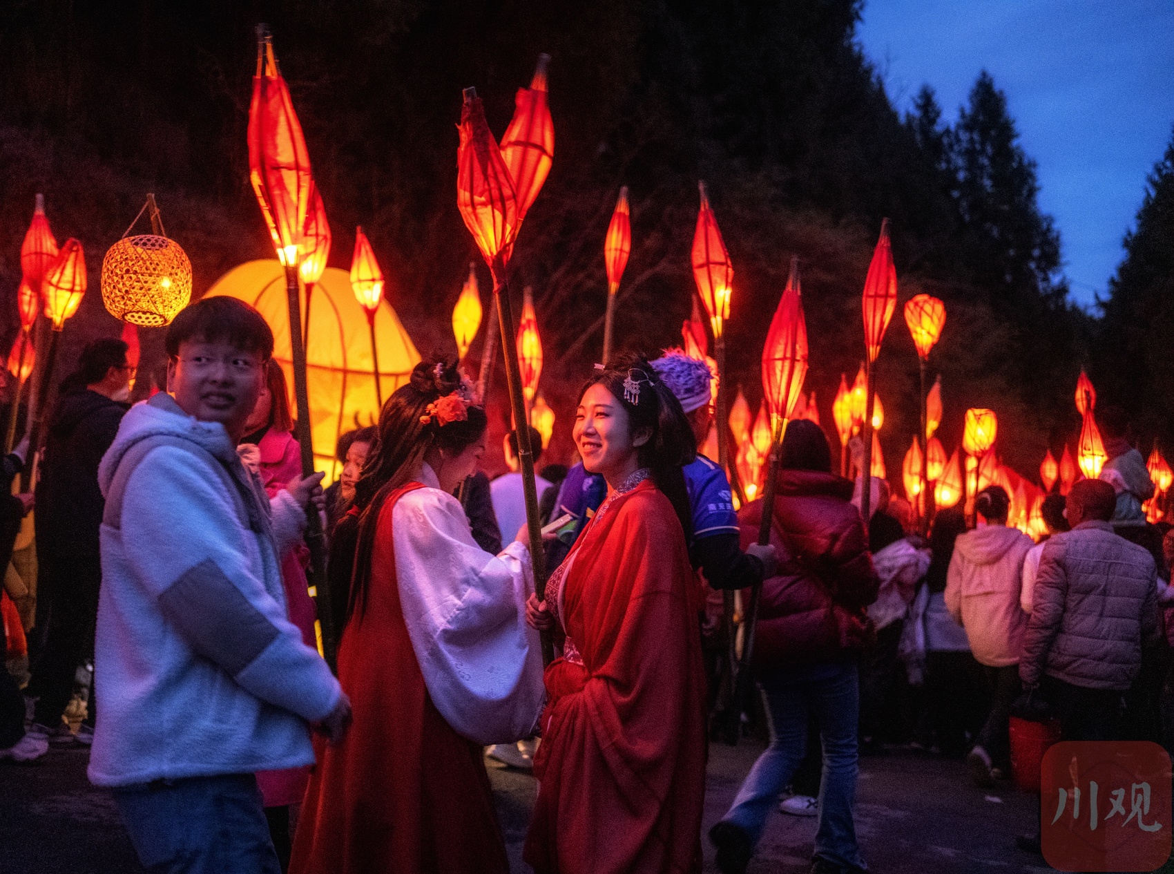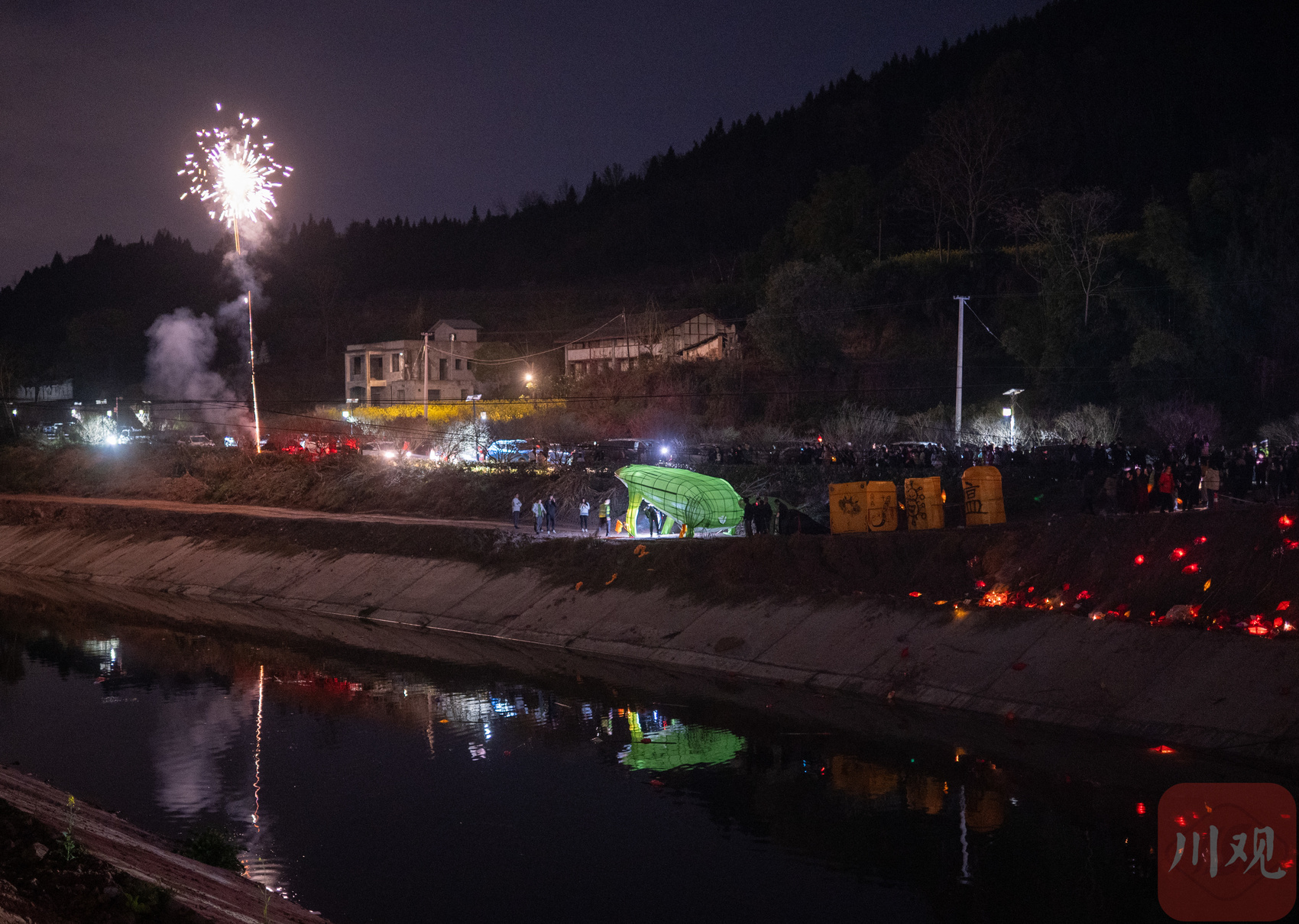 村民和游客手持蛴蟆灯进行送蛴蟆活动。