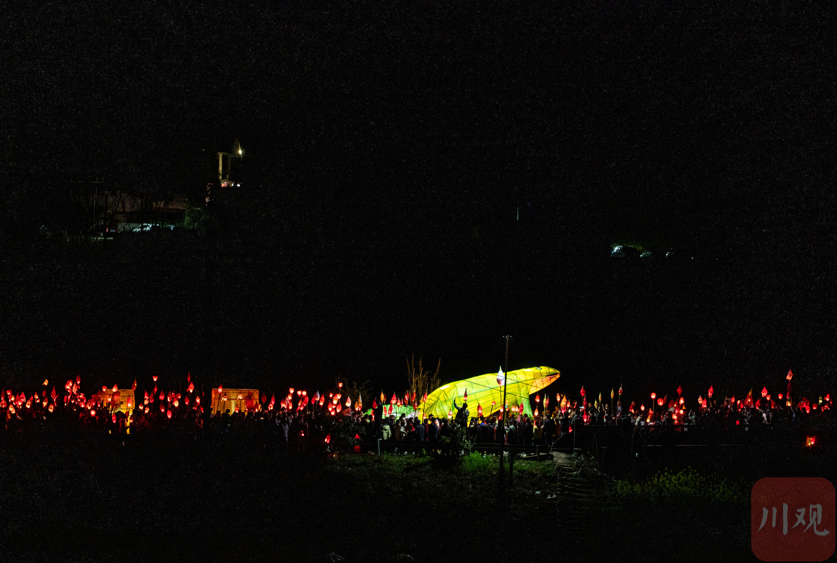 大型的蛴蟆灯在送蛴蟆活动中。