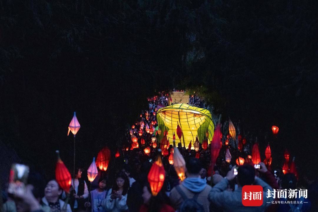 “送蛴蟆,蛴蟆公,蛴蟆婆,把你蛴蟆送下河。”这首流传于川北西充的古老童谣,吟唱的是明末清初以来,人们借由竹灯与仪式驱赶瘟疫、祈求安康的集体记忆。入夜时分,蛴蟆造型的灯组在众多竹灯的簇拥下,缓缓走向河边,也传达出人们祈求健康平安的良好愿望。