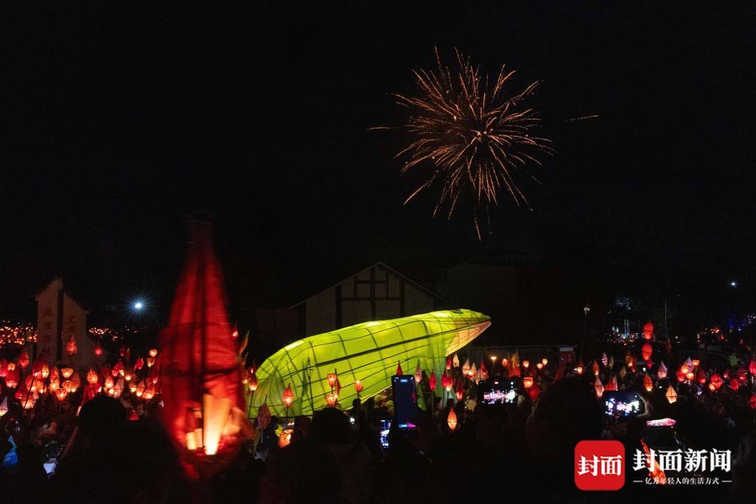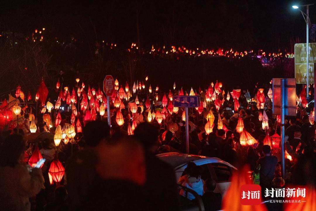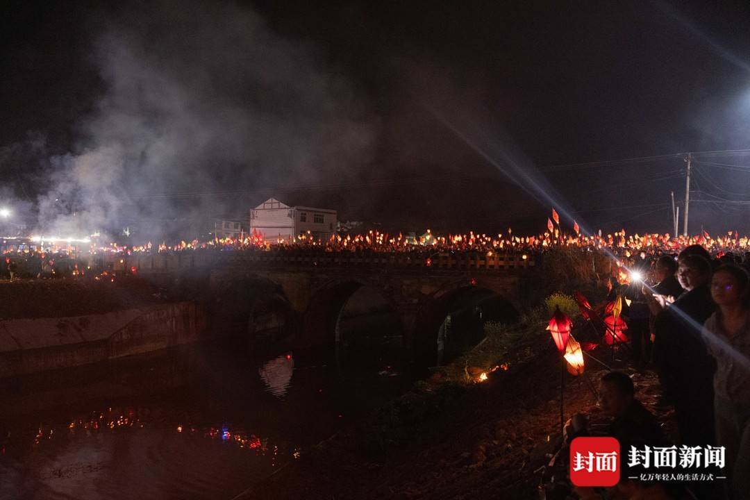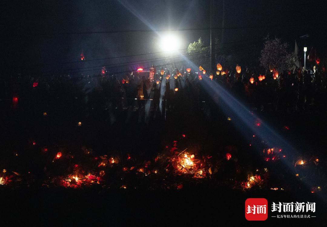 3月2日农历大年十四,南充市西充县莲池镇一年一度的“送蛴蟆”民俗活动,众多民众点起竹灯“送蛴蟆”祈福。