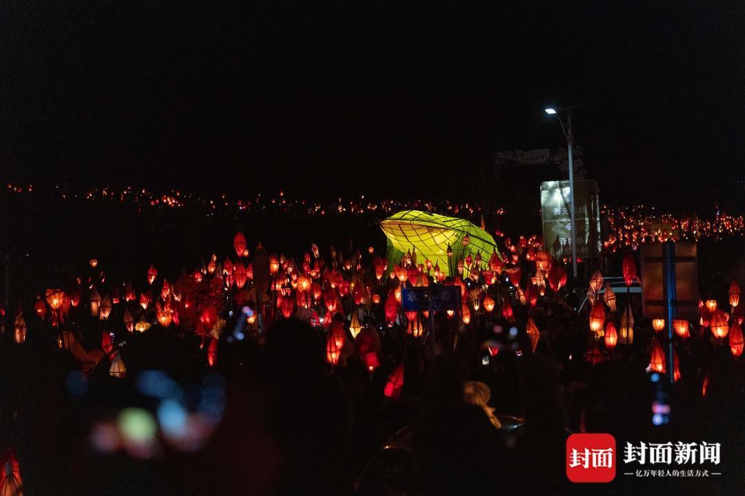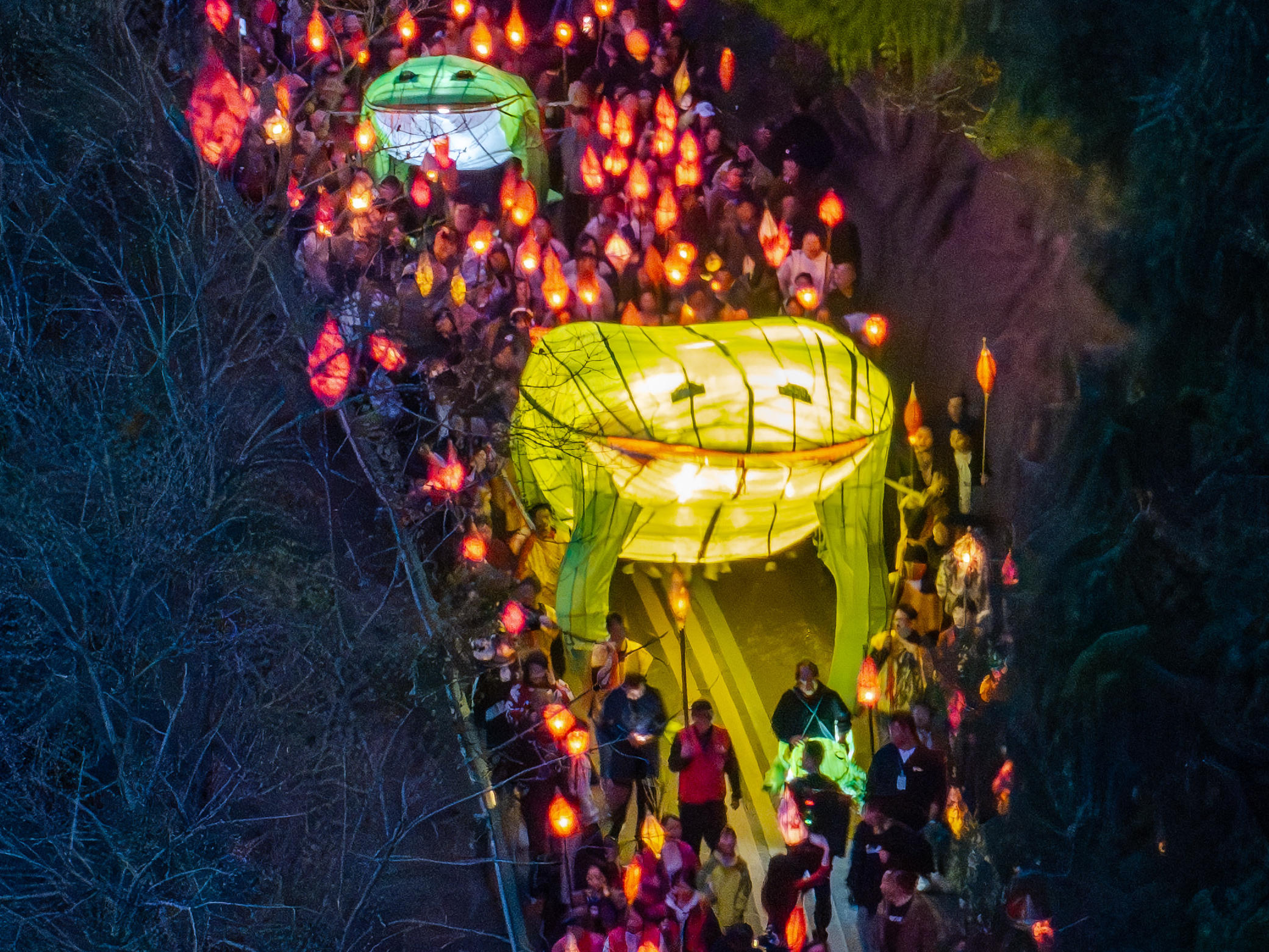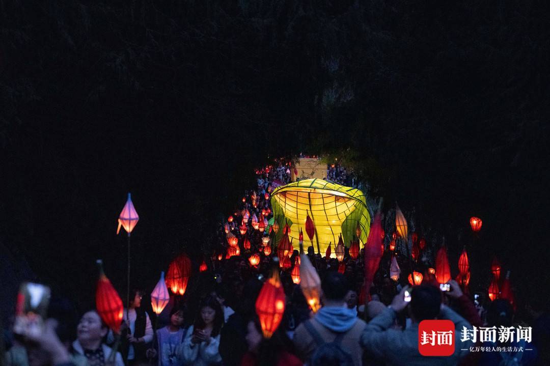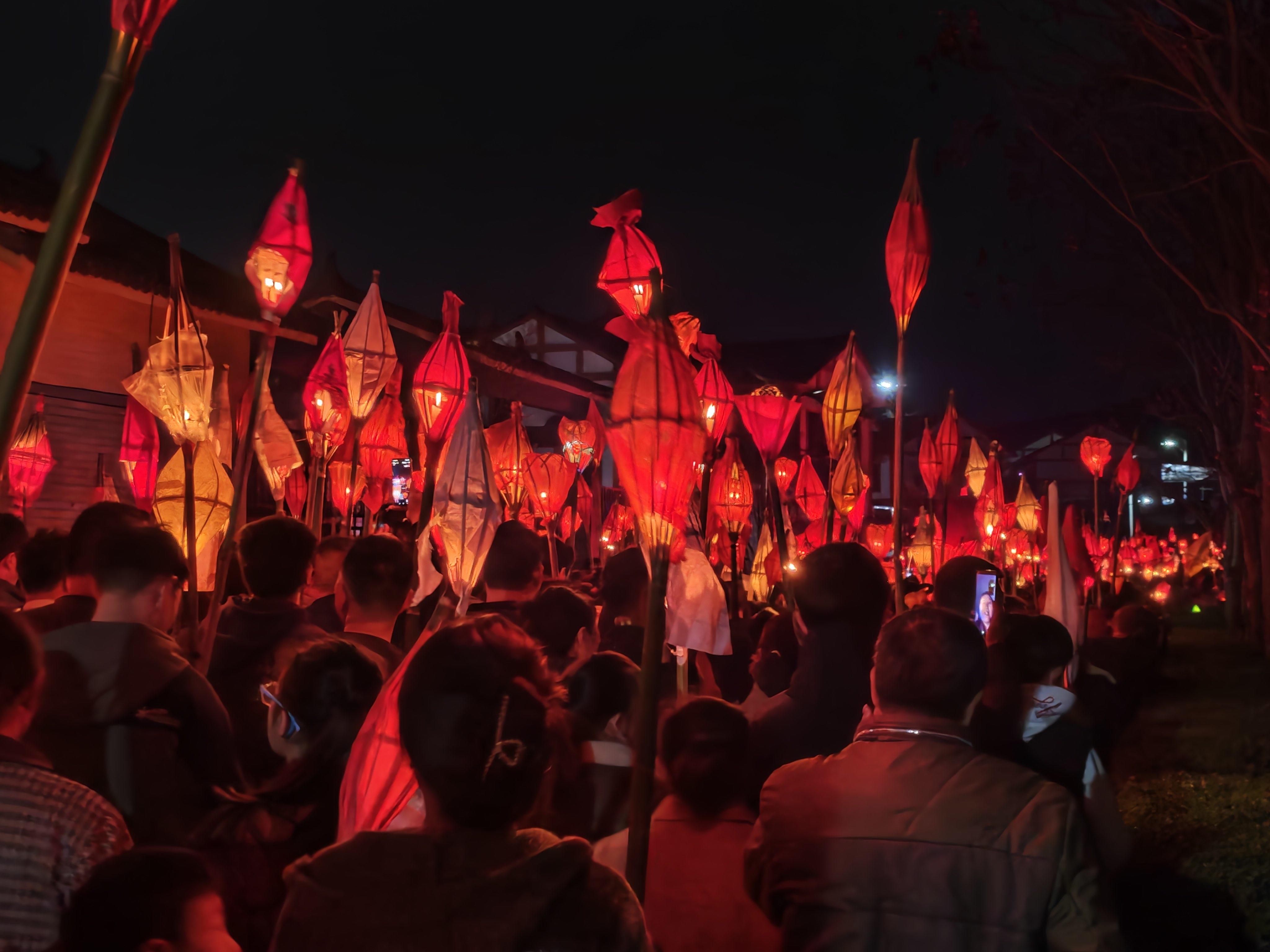 3月2日农历大年十四,南充市西充县莲池镇一年一度的“送蛴蟆”民俗活动,众多民众点起竹灯“送蛴蟆”祈福。