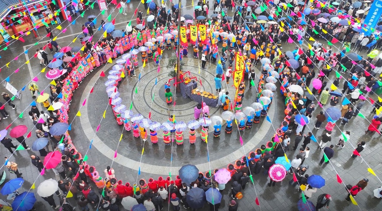 3月2日,古蔺县 2026 年农文旅商融合促消费系列文化活动暨“蝶飞宝佤踩山迎福大寨踩山节”在大寨苗族乡向阳村宝佤山开幕。