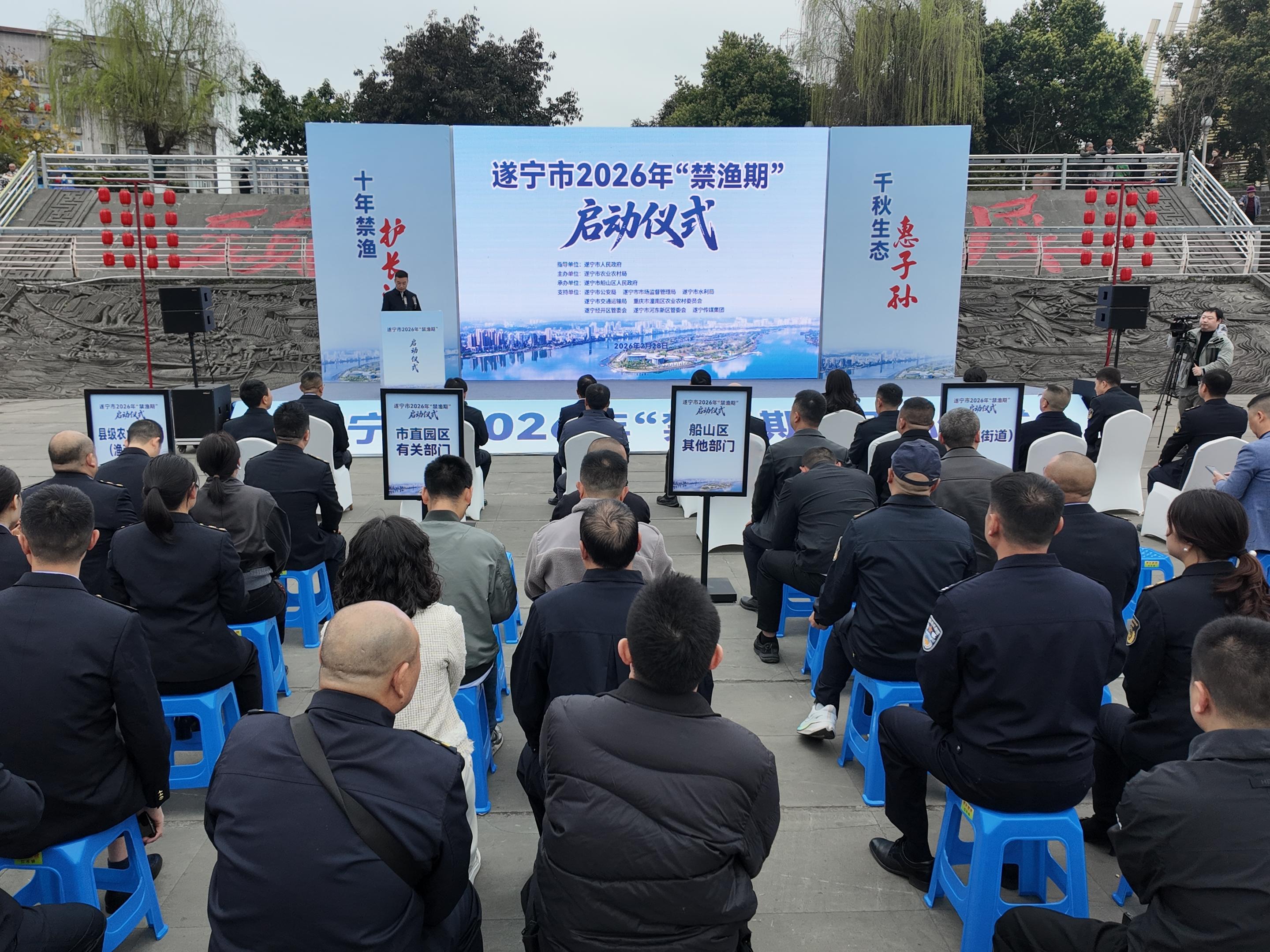 2月28日,遂宁市2026年“禁渔期”启动仪式在犀牛堤码头广场举行。自3月1日0时起至6月30日24时止,遂宁市正式进入为期4个月的禁渔期。禁渔范围为遂宁市天然水域。在禁渔期内,禁止捕捞作业、游钓和水禽放养;禁止扎巢取卵、挖沙采石;禁止销售、收购在禁渔期内捕捞的渔获物。