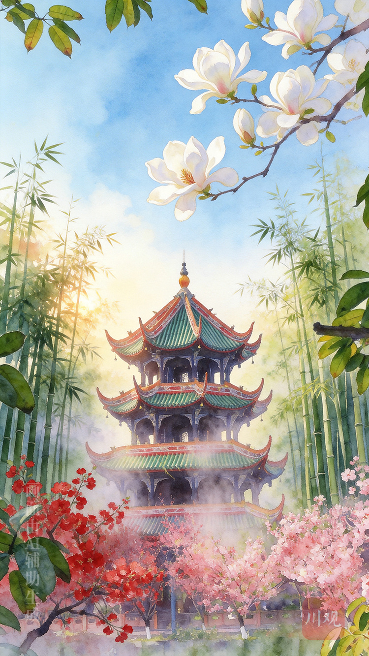 几场春雨过后,新生的枇杷叶如翠玉簪般卷曲,垂丝海棠斜倚着朱栏,将春色轻轻系在游人的衣襟;而那些零落成尘的梅花,似乎早已融入薛涛的诗笺。薛涛,这位唐代杰出的女诗人,在成都度过了她的一生,留下了众多脍炙人口的诗篇。史书中记载,她曾生活过的万里桥边、浣花溪畔、碧鸡坊舍等旧址,如今已难觅踪迹。然而,她的诗作《洪度集》以及她创制的“浣花笺”(薛涛笺)却流传至今,影响深远。