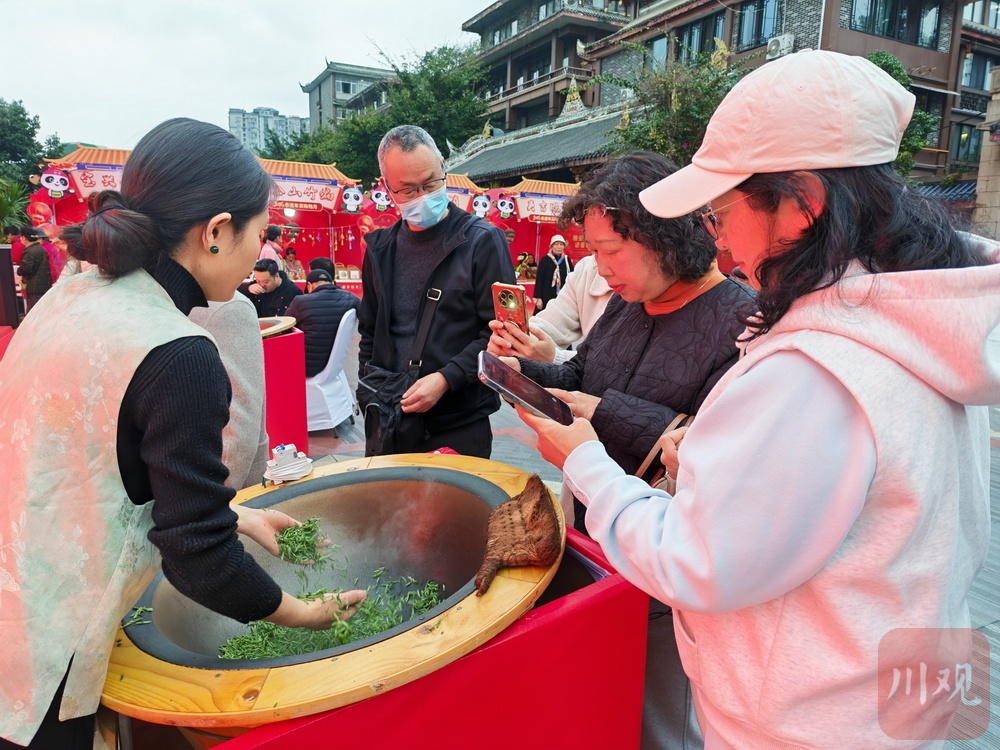 活动现场,互动体验区内热闹非凡,非遗展演、特色展销等更是人气高涨。现场,《芦山花灯》《龙行十八式》等雅安非遗节目赢得阵阵喝彩;蒙顶山茶、雅安藏茶、荥经砂器、汉源花椒等特色风物集中展销,创新推出的“非遗盲盒”吸引年轻消费群体驻足。