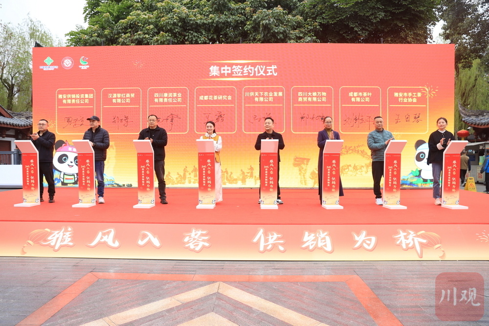 启动仪式上,雅安与成都多家企业、协会完成集中签约,合作涵盖农产品流通、茶叶贸易、非遗产业、茶文化交流等多个领域。